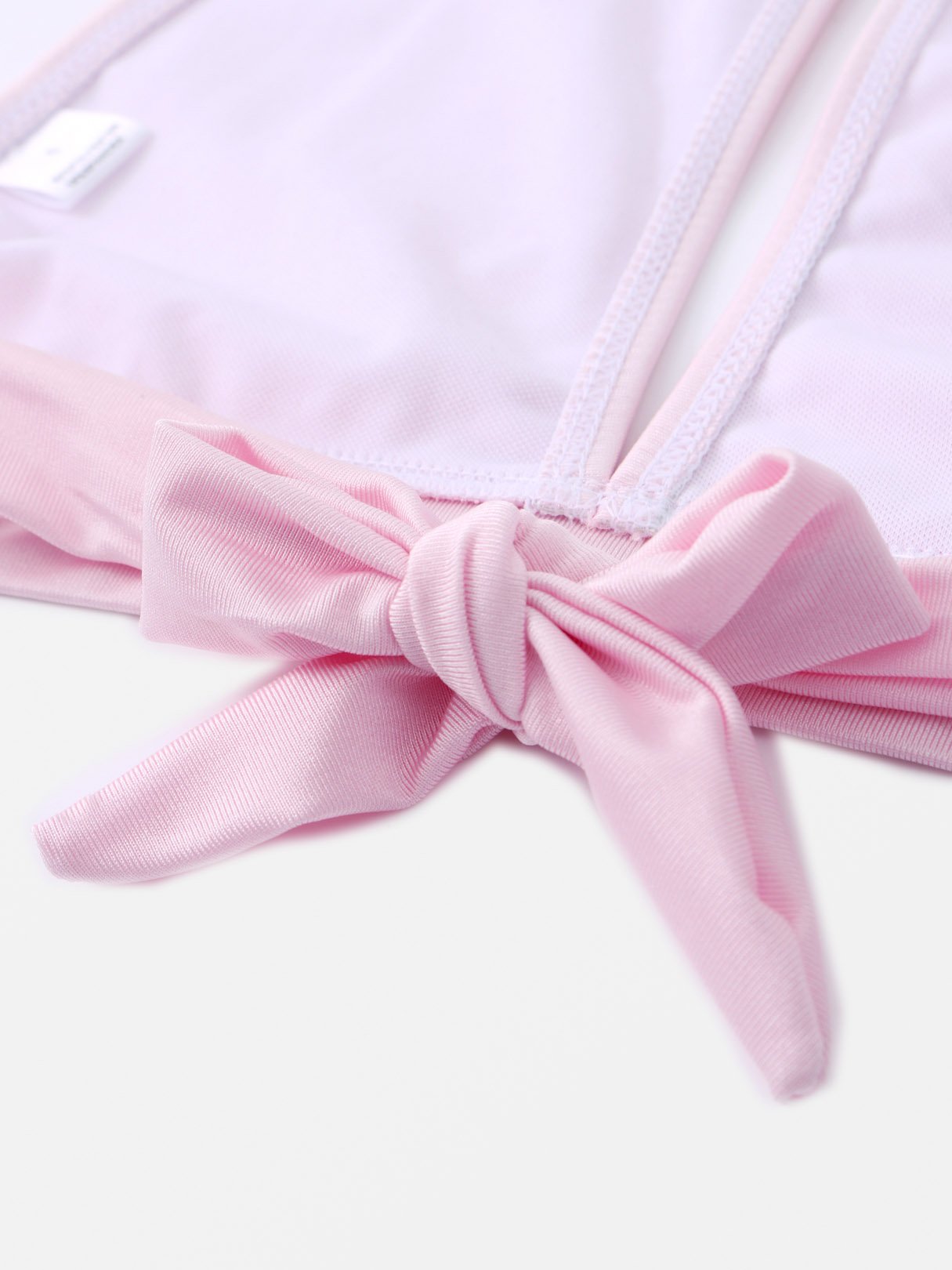 Pink Halter Sleeveless Plain Tie-Up High Waist Two Piece Bikinis