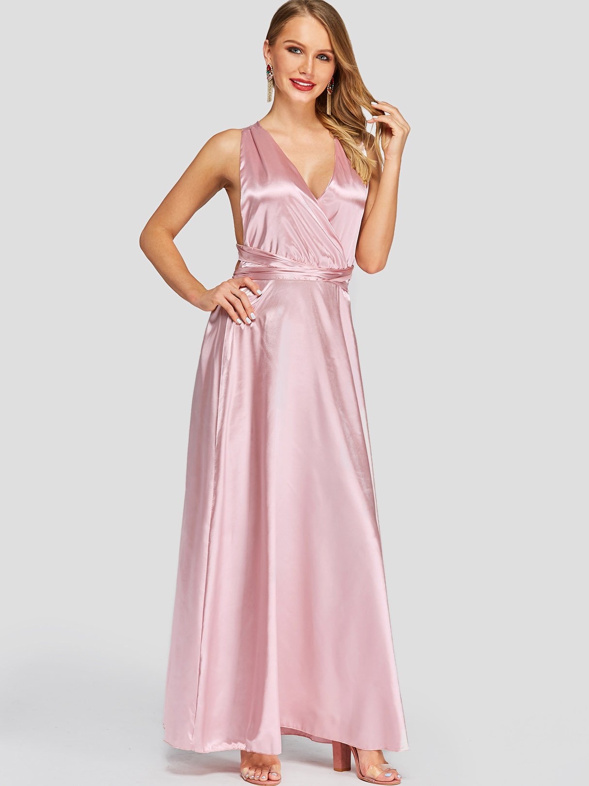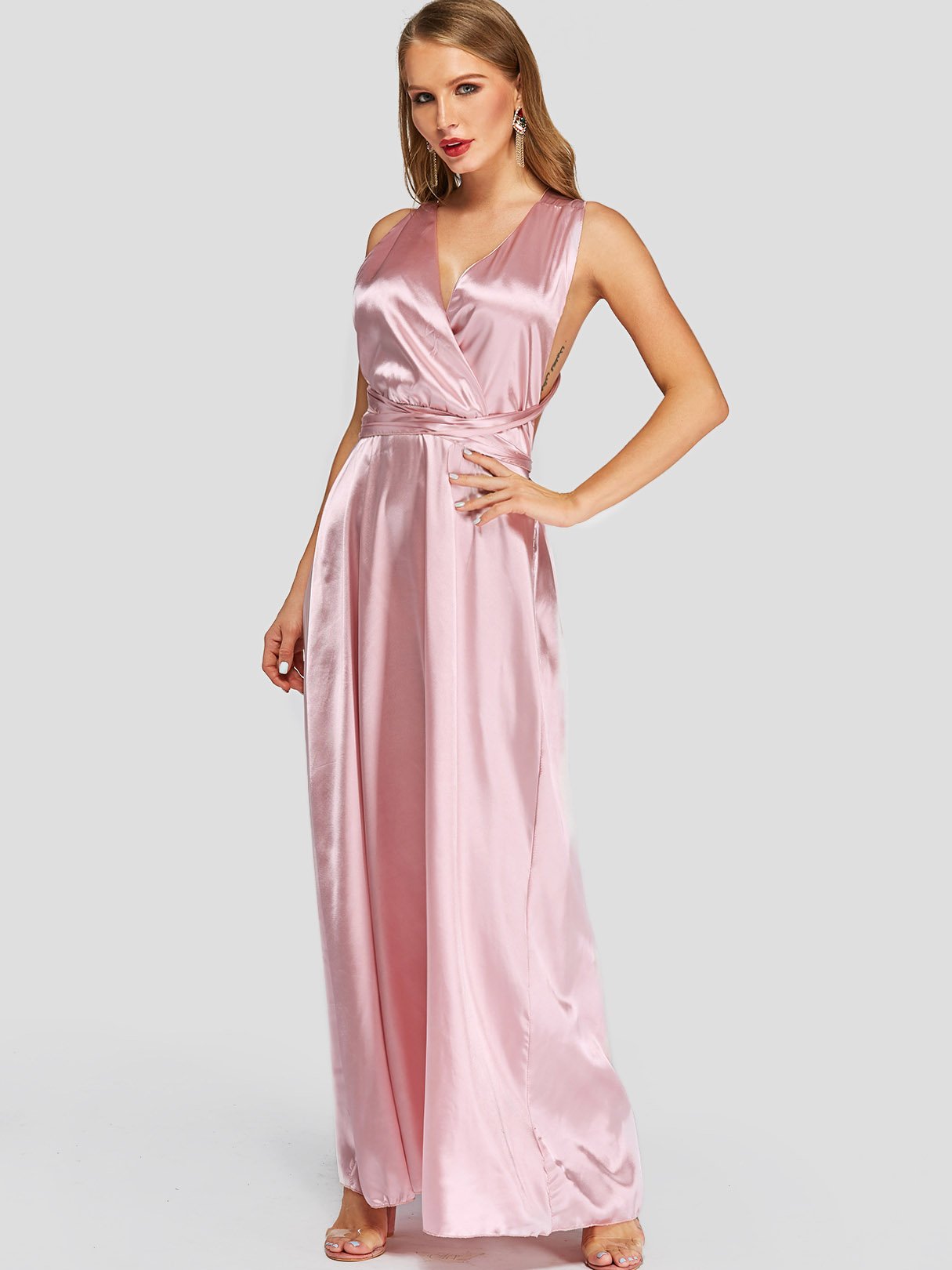 Material:Cotton,Polyester,OtherNeckline:V-Neck,Crossed CollarSeason:Spring,Summer,AutumnSleeves:SleevelessStyle:Party Style,Sexy StyleDetail:Backless Design,Lace-Up Design,Self-Tie Design,Criss-CrossWaist Design:High-WaistedLength:MaxiFit:Regular FitOccasion:Party,Wedding Guest