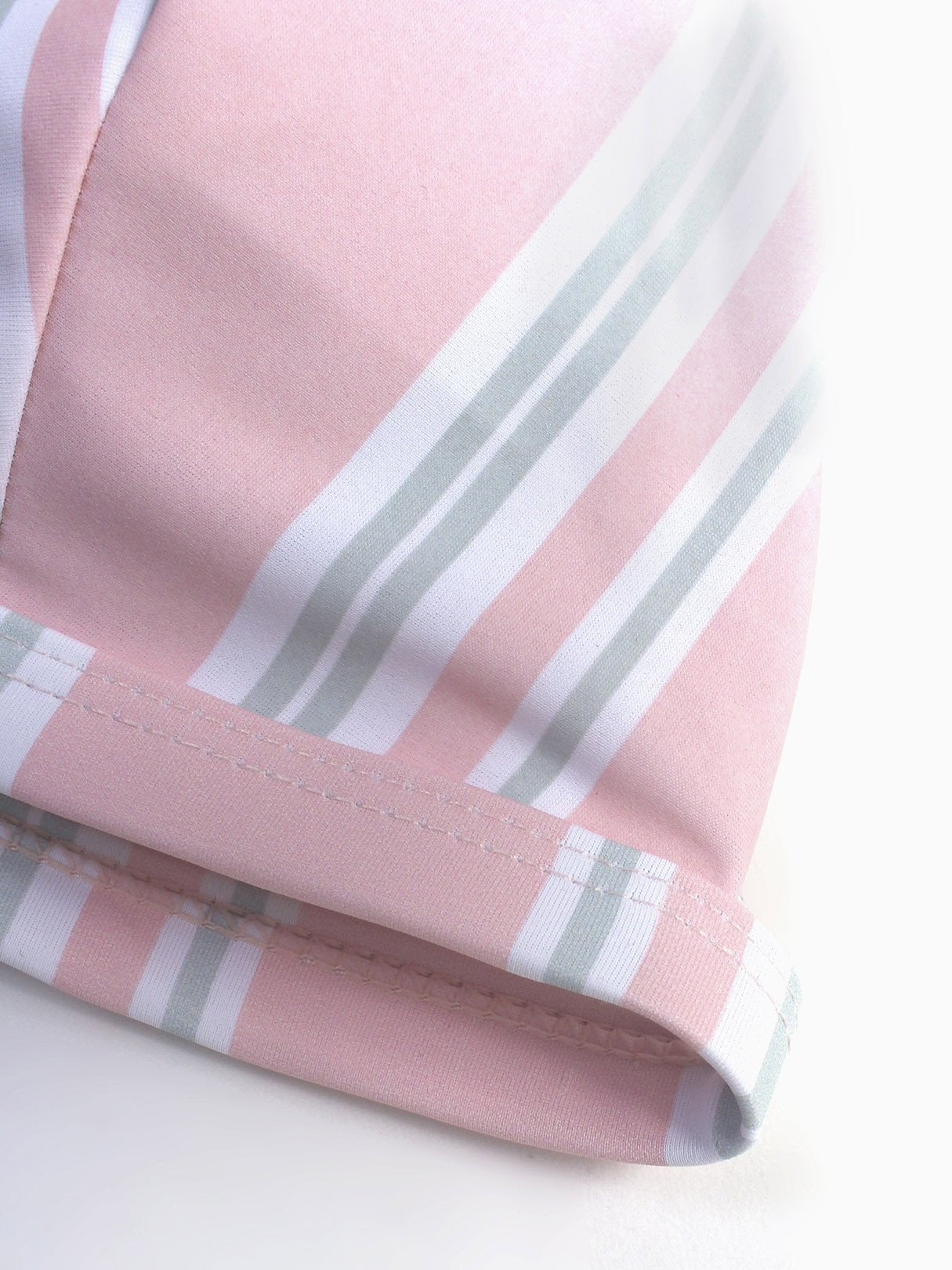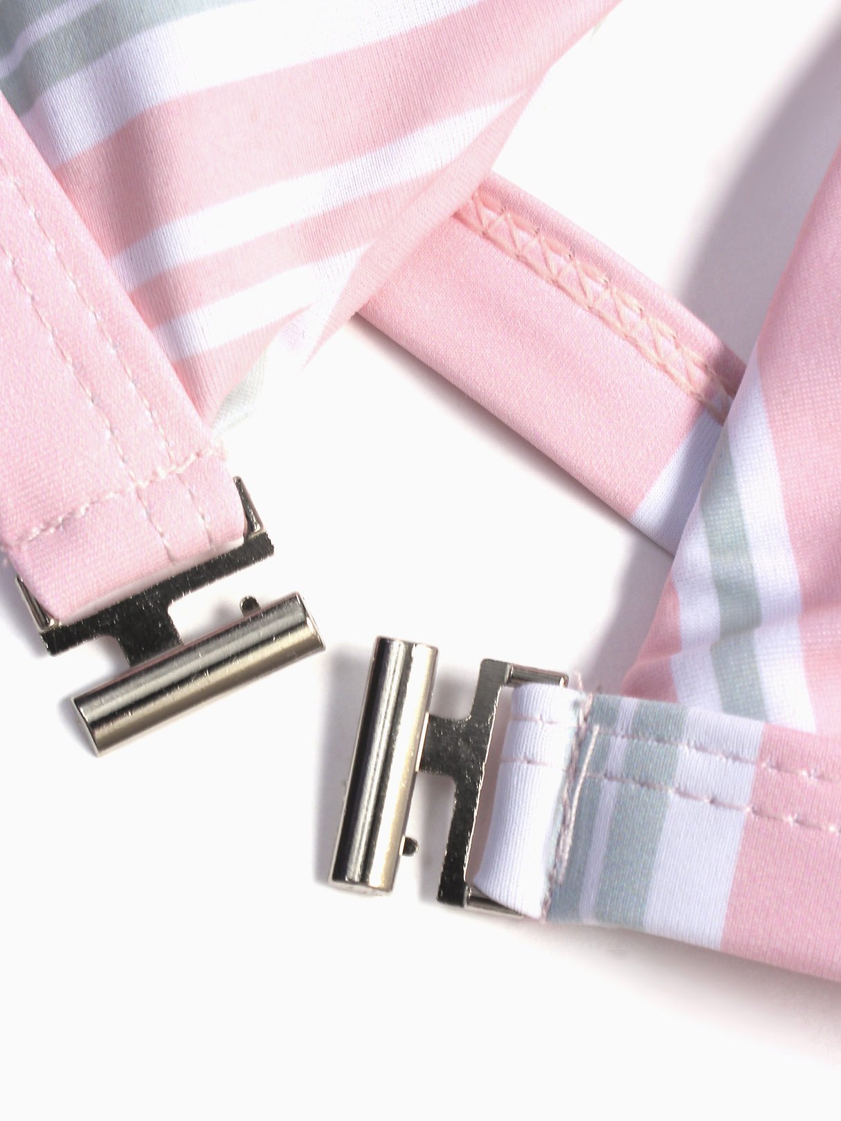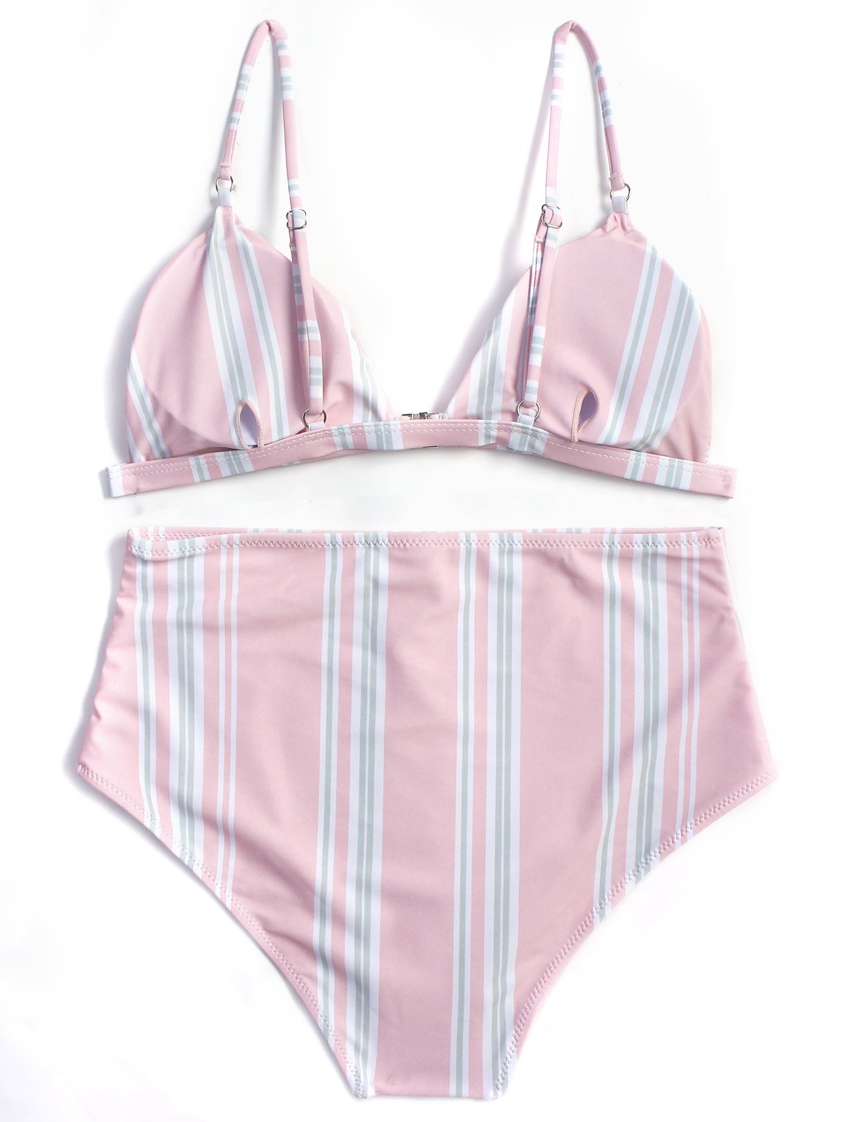 Pink V-Neck Sleeveless Stripe Spaghetti Strap High Waist 2 Piece Bikinis