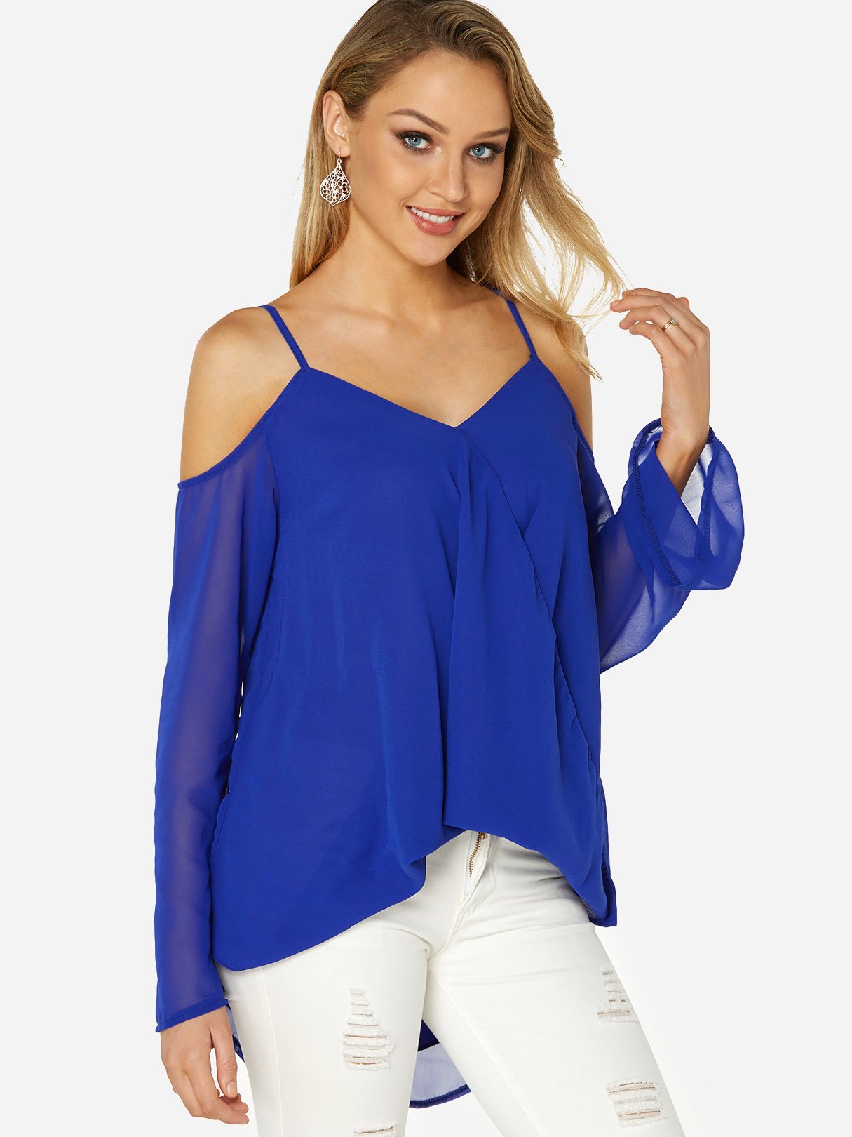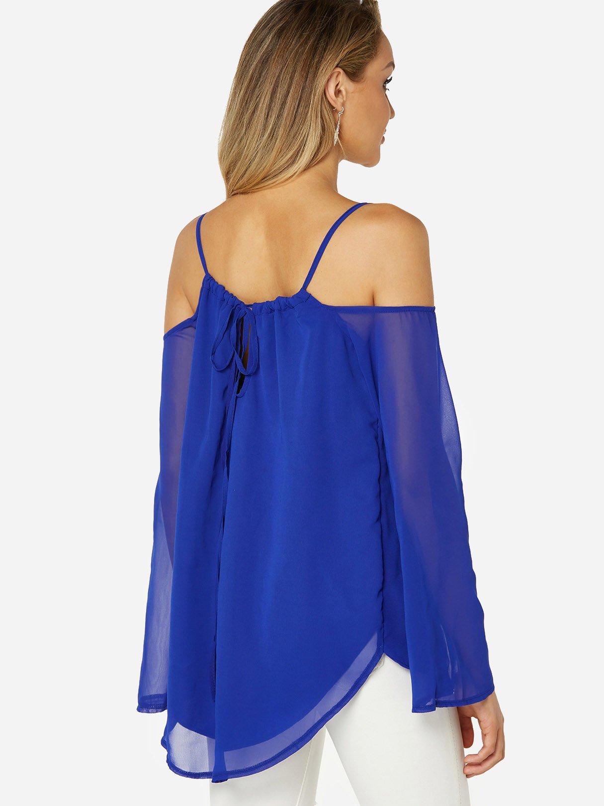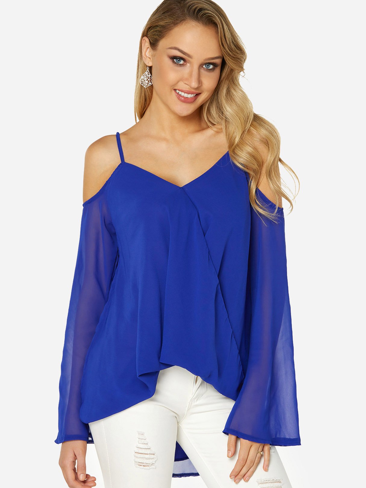 Material:PolyesterSeason:Spring,SummerSleeves:Long SleevesPattern:PlainStyle:Casual StyleDetail:Crossed Front DesignFit:Loose FitSleeves Type:Bell Sleeves