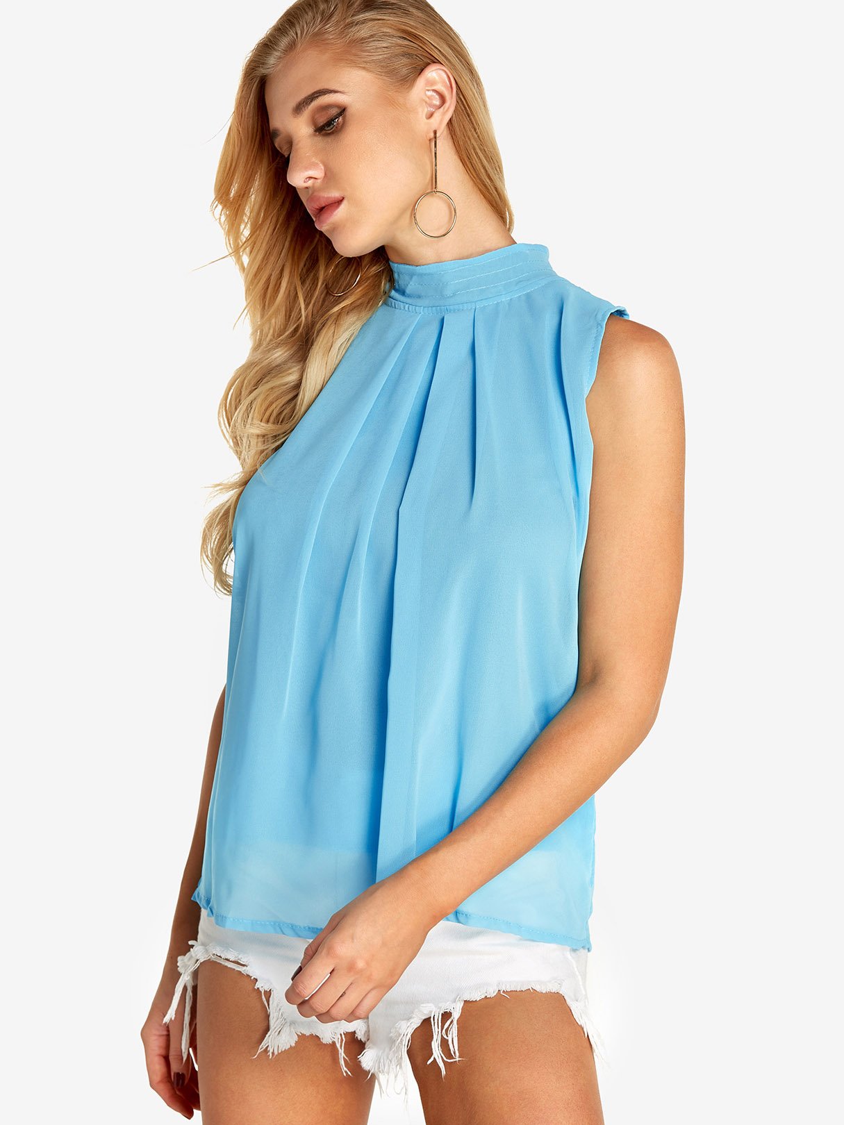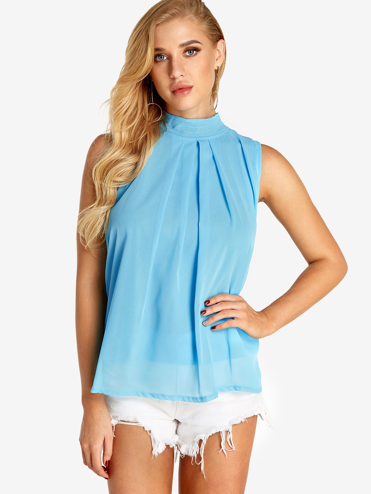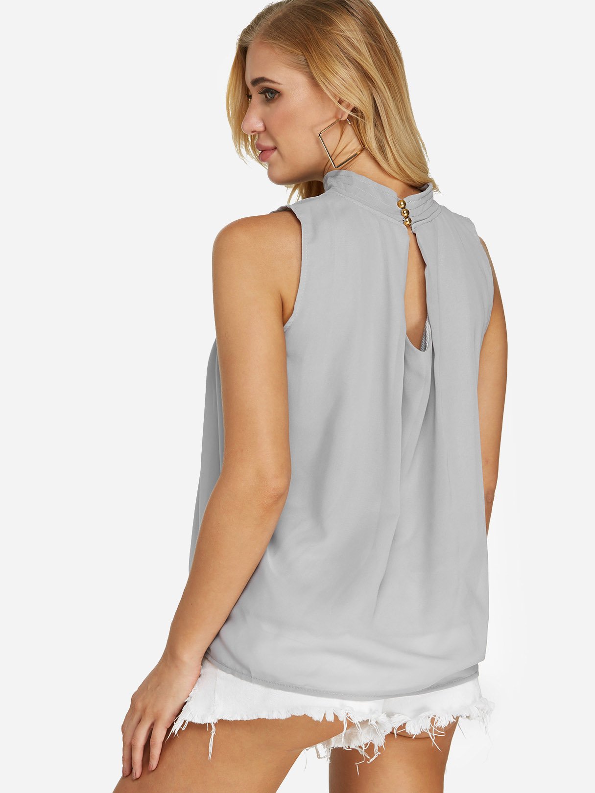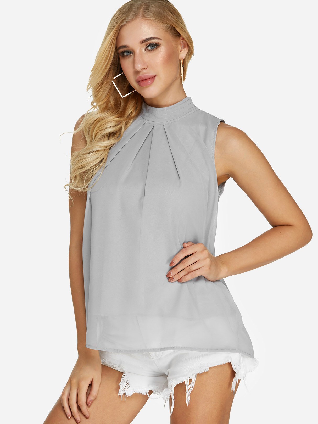 Material:Polyester,OtherSeason:Spring,SummerSleeves:SleevelessPattern:PlainStyle:Casual StyleHem Design:Ruffle HemType:Camis &Amp; VestsFit:Regular Fit