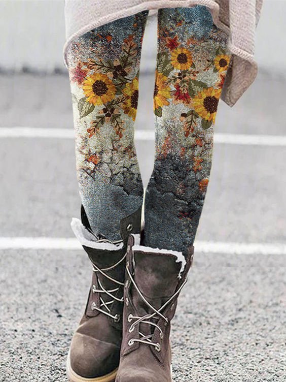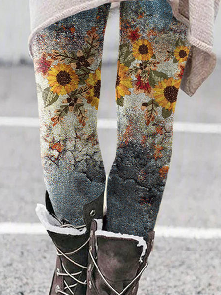 Plus Size Casual Daisy Tight Long Leggings - Multicolor / S is backordered and will ship as soon as it is back in stock.