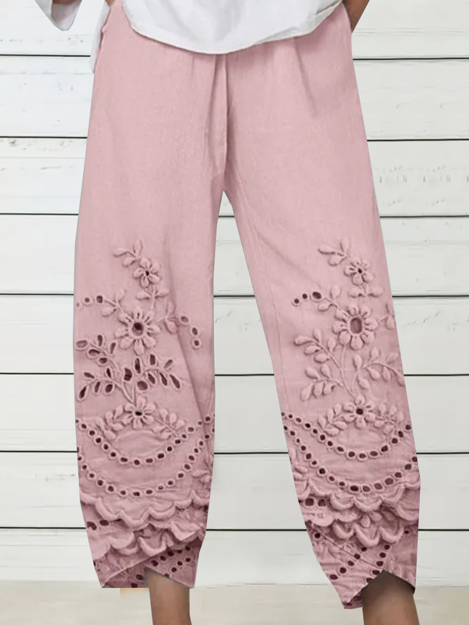 Plus Size Casual Floral Pocket Stitching Fashion Long Pants - Pink / XS is backordered and will ship as soon as it is back in stock.