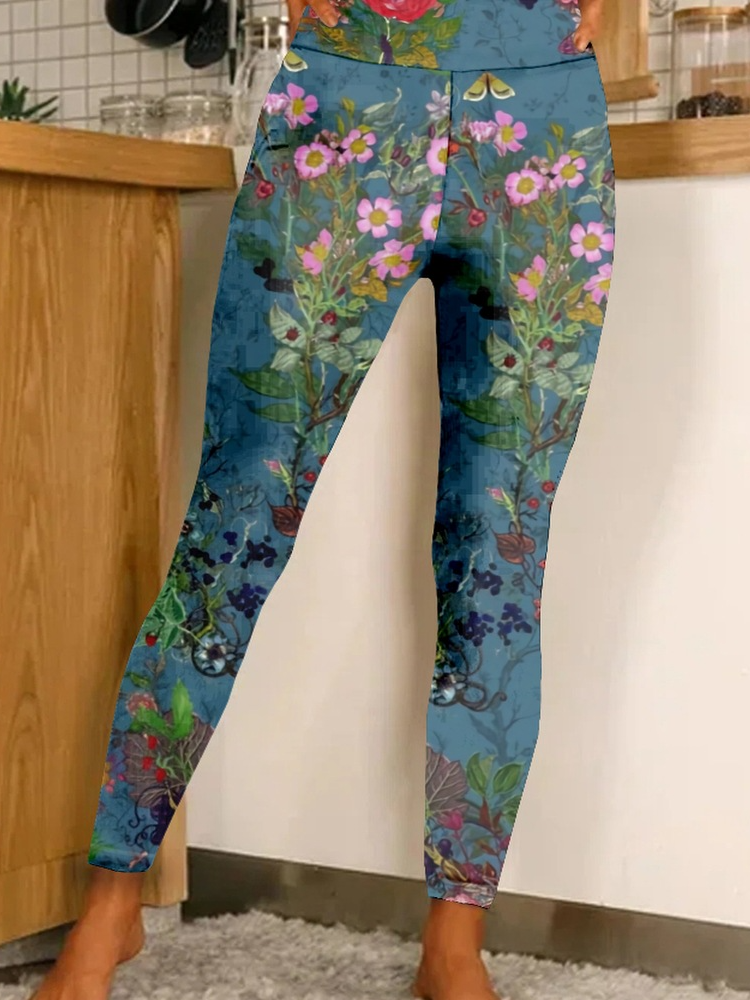 Plus Size Casual Floral Tight Long Leggings - Green / XS is backordered and will ship as soon as it is back in stock.