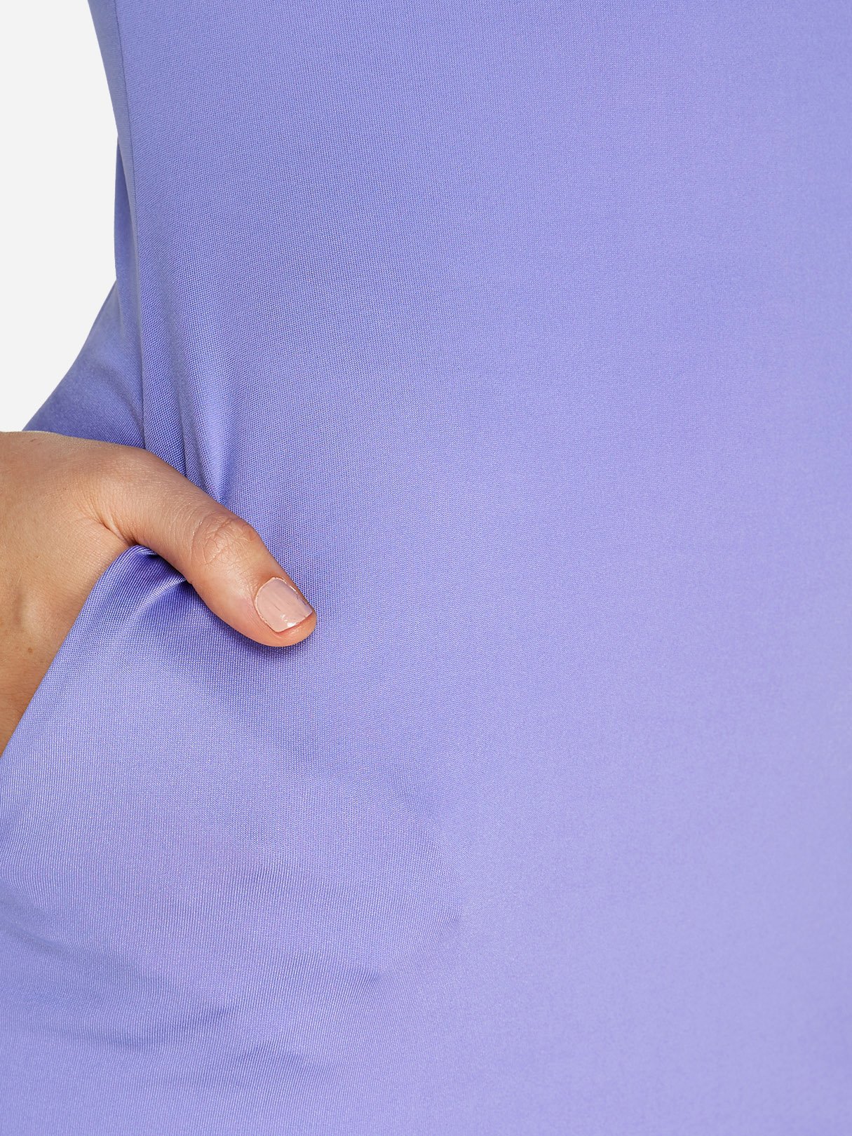 Purple Round Neck Half Sleeve Plain Side Pockets Dresses