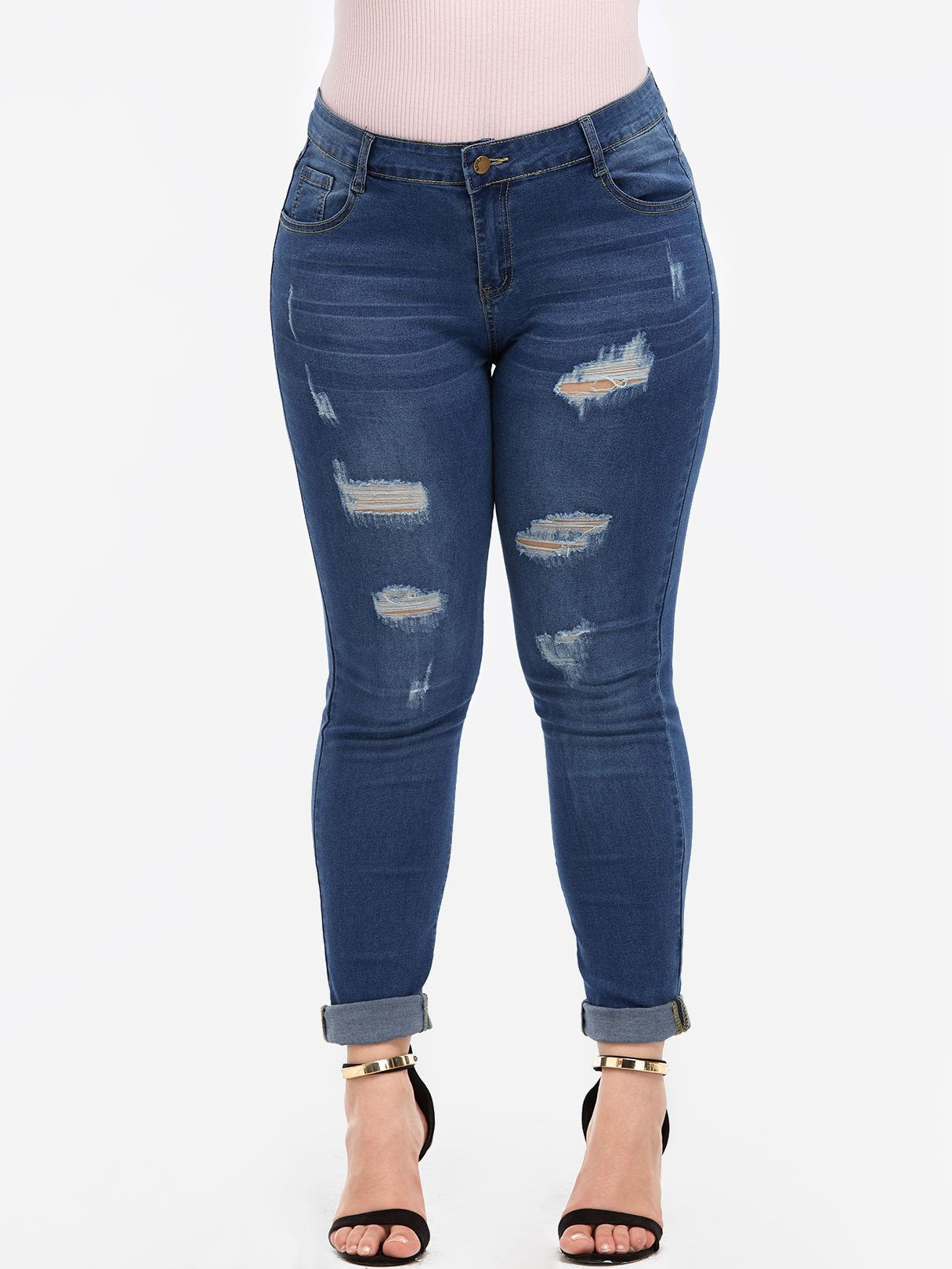 Random Ripped Blue Plus Size Bottoms - Blue / XL is backordered and will ship as soon as it is back in stock.