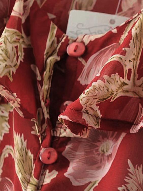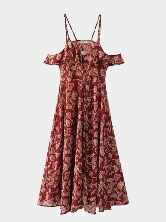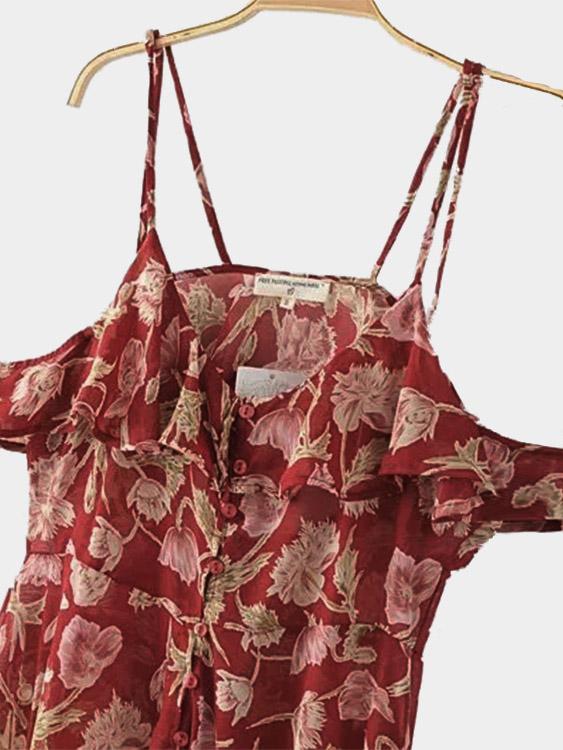 Red Cold Shoulder Short Sleeve Floral Print Irregular Hem Mini Dress