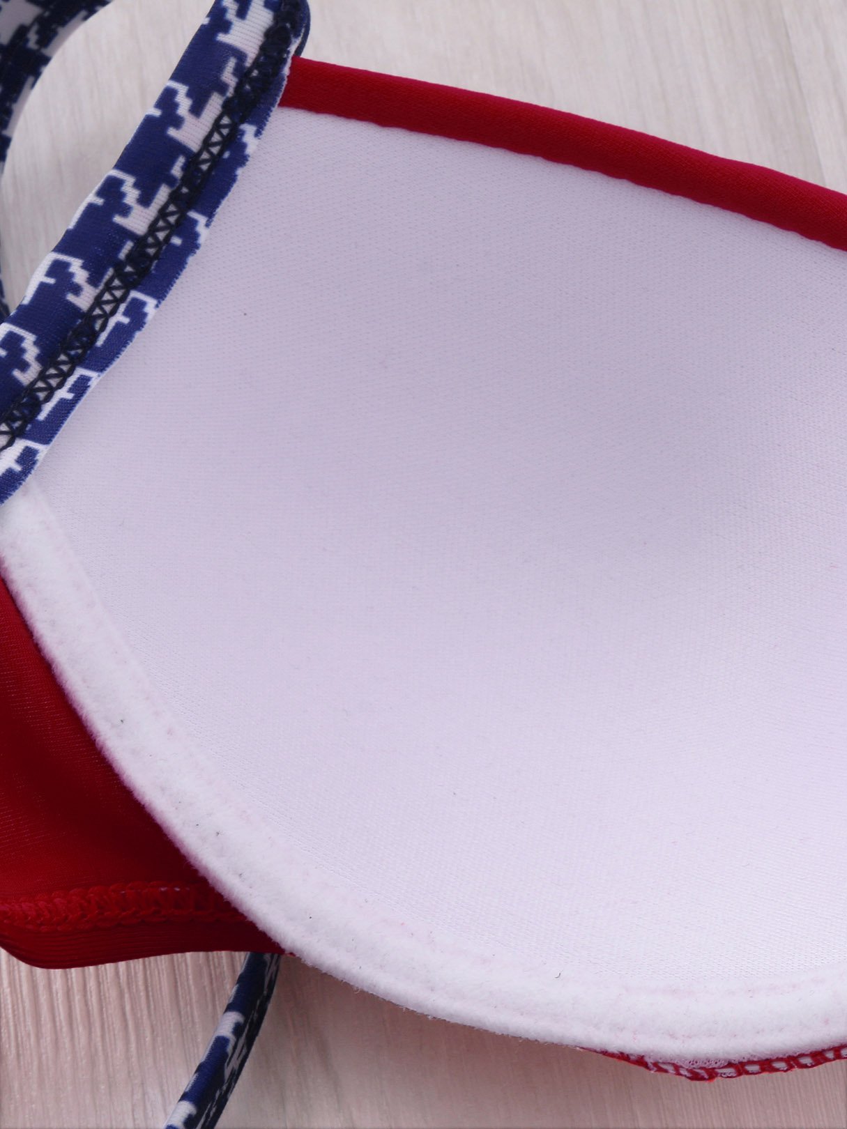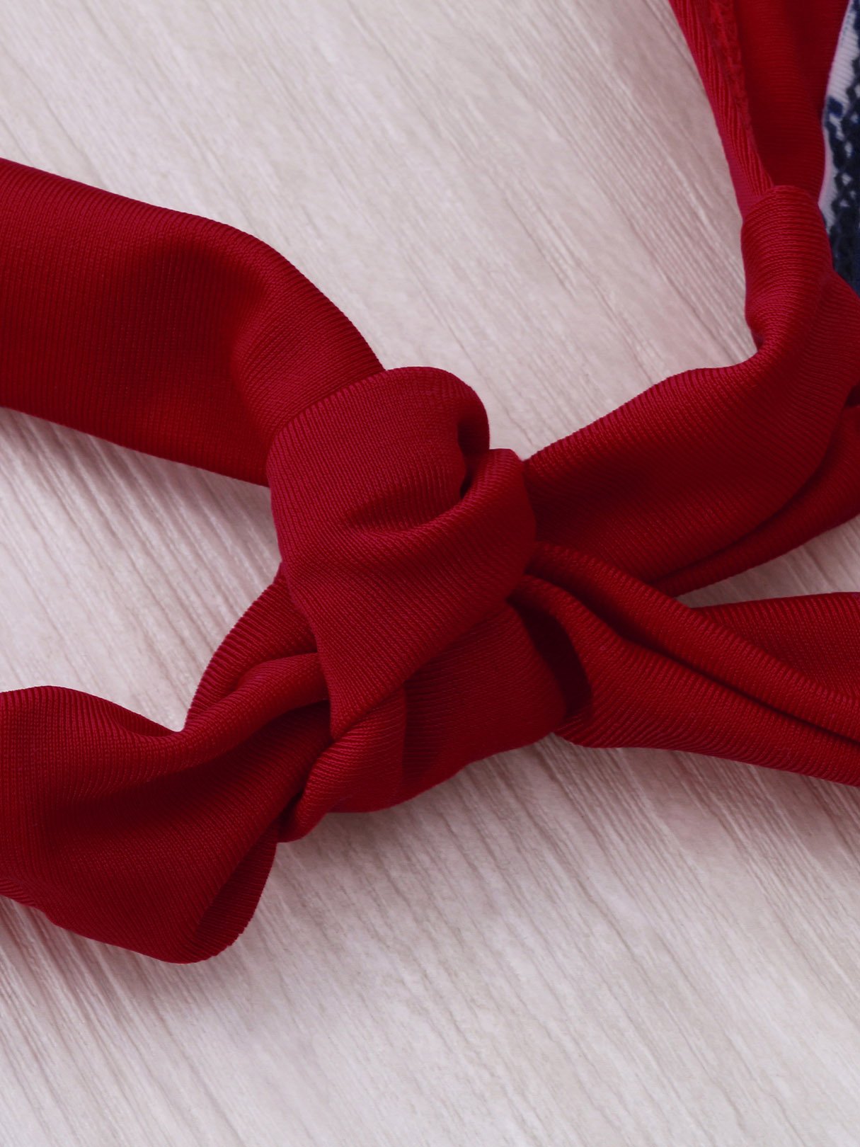 Red Deep V-Neck Sleeveless Floral Print Backless Two Piece Bikinis