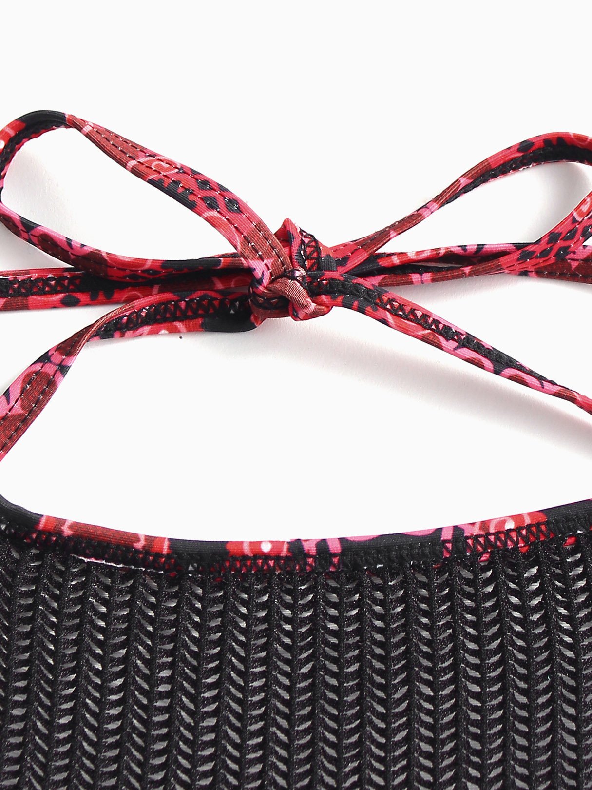 Red Halter Sleeveless Printed Two Piece Bikinis