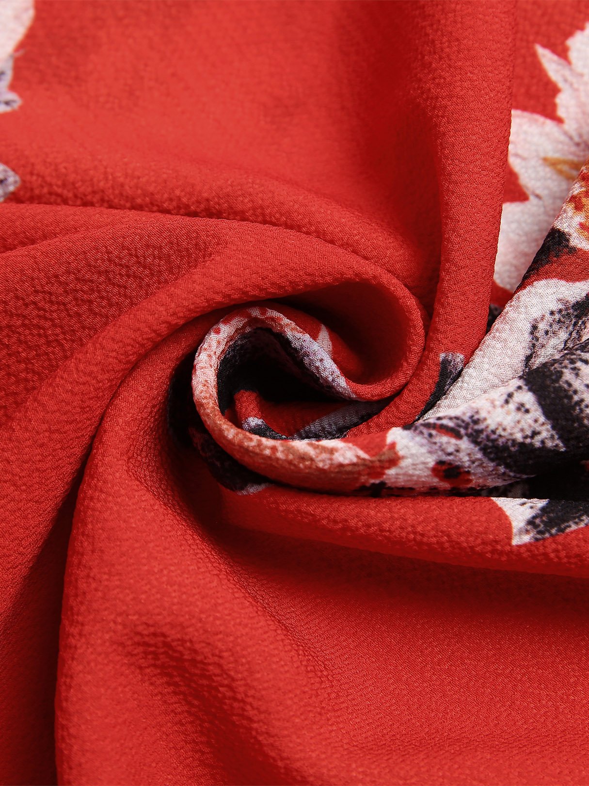 Red Off The Shoulder 3/4 Length Sleeve Floral Print Backless Self-Tie Mini Dresses - Red / S is backordered and will ship as soon as it is back in stock.
