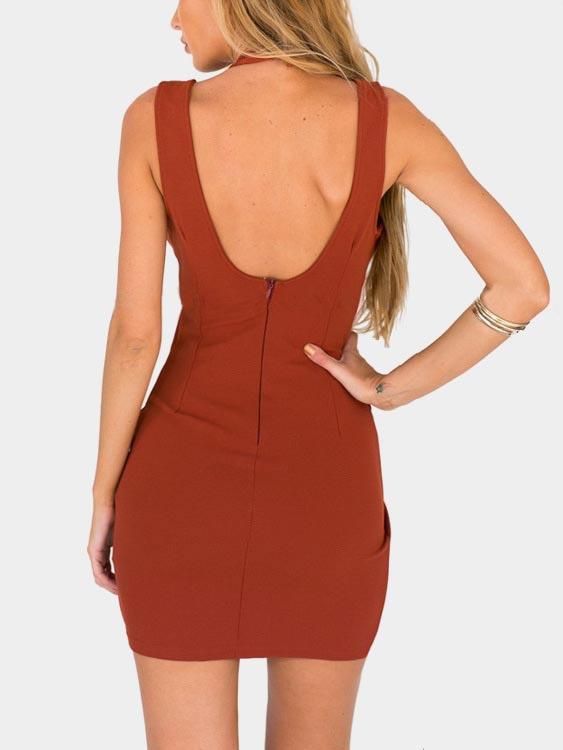 Red Sleeveless Zip Back Cut Out Mini Dress