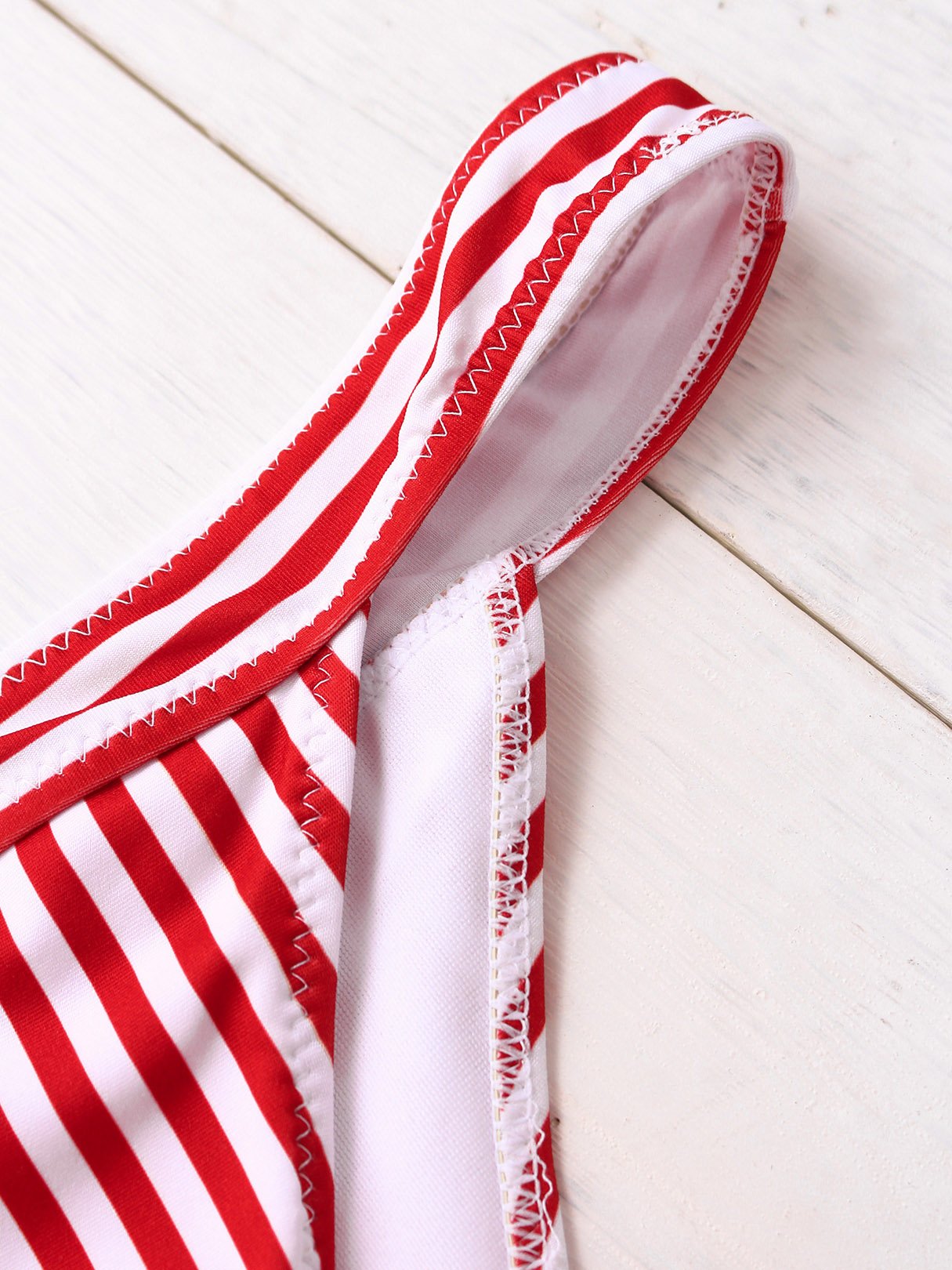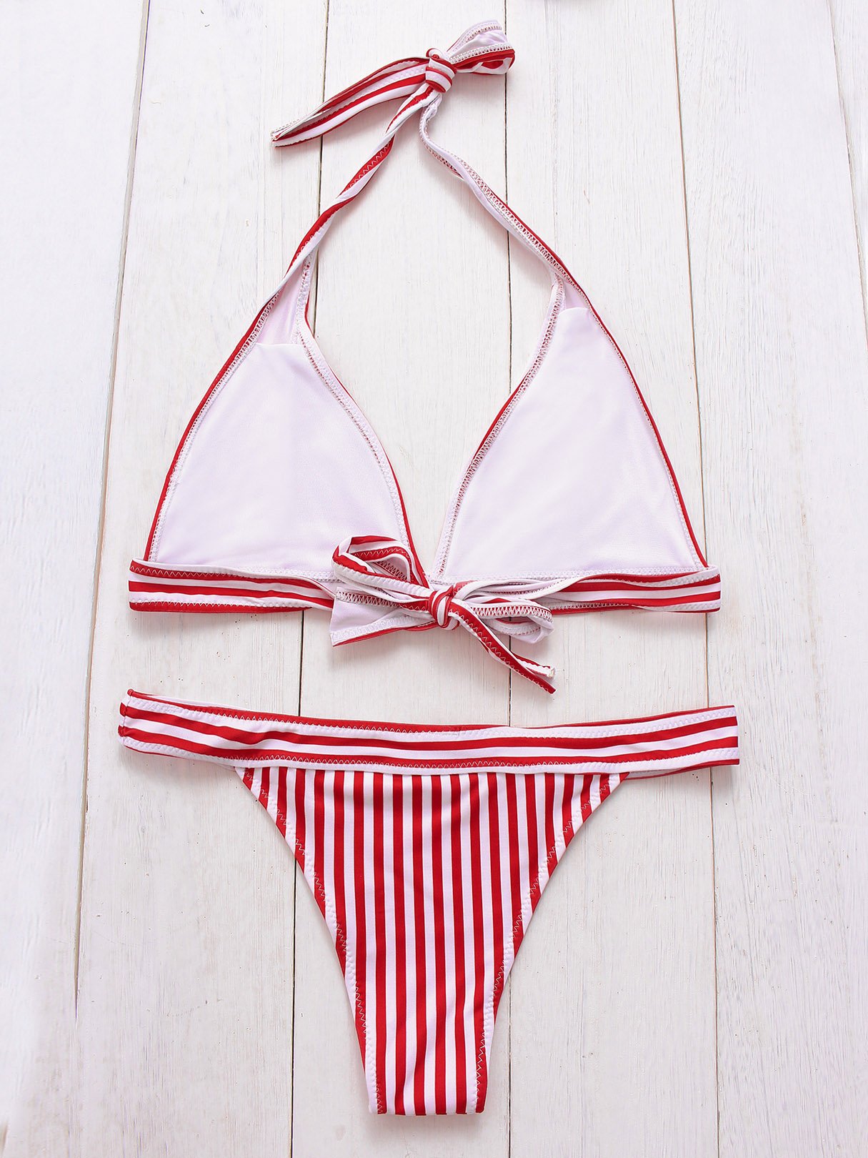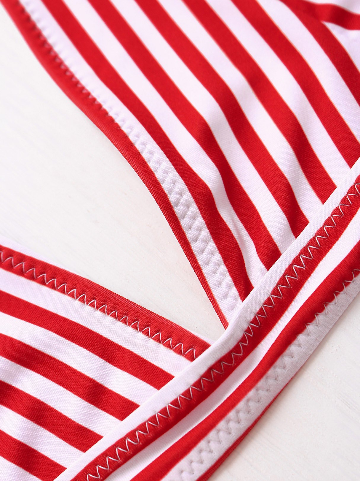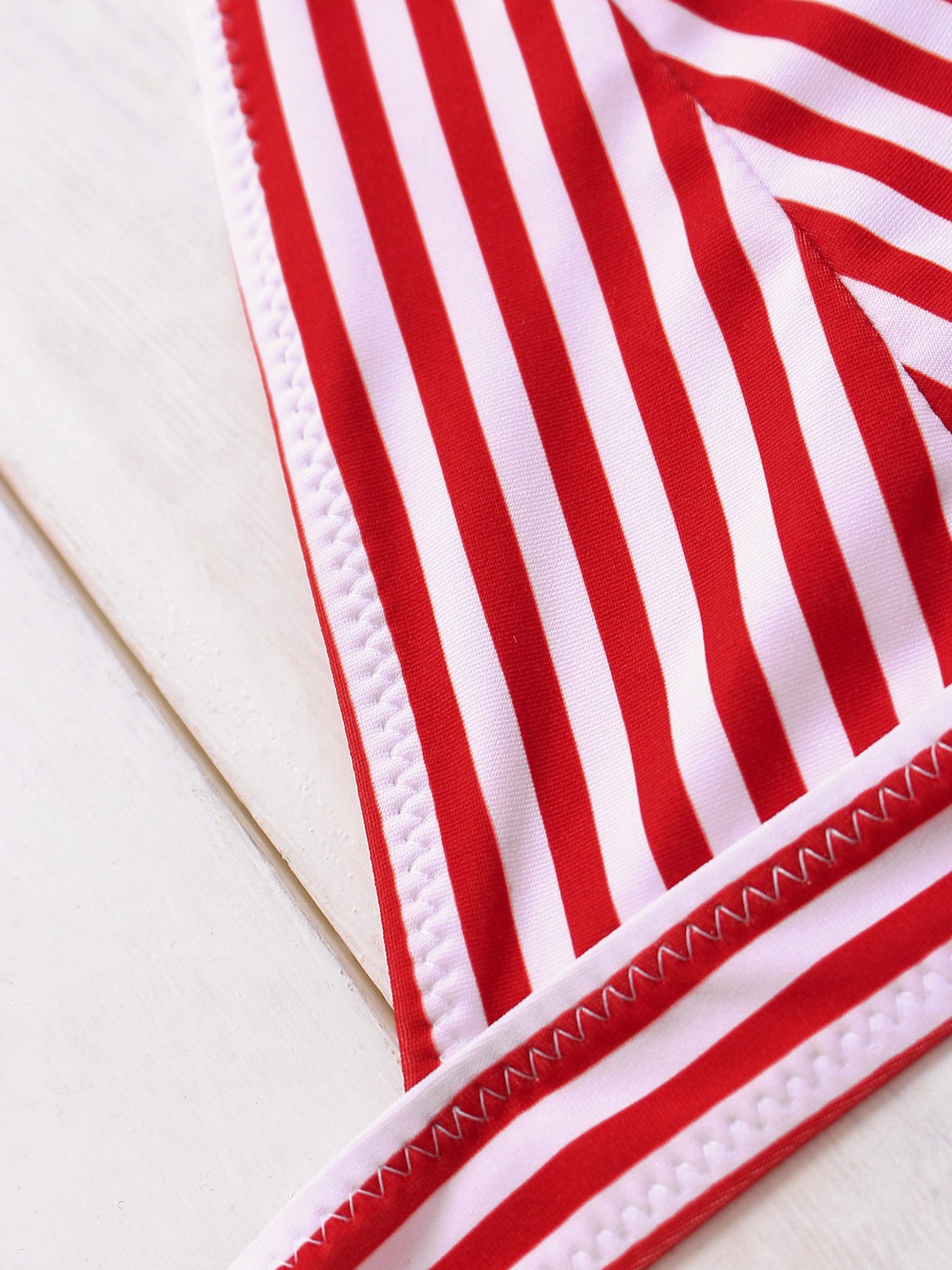 Red V-Neck Sleeveless Stripe Two Piece Bikinis