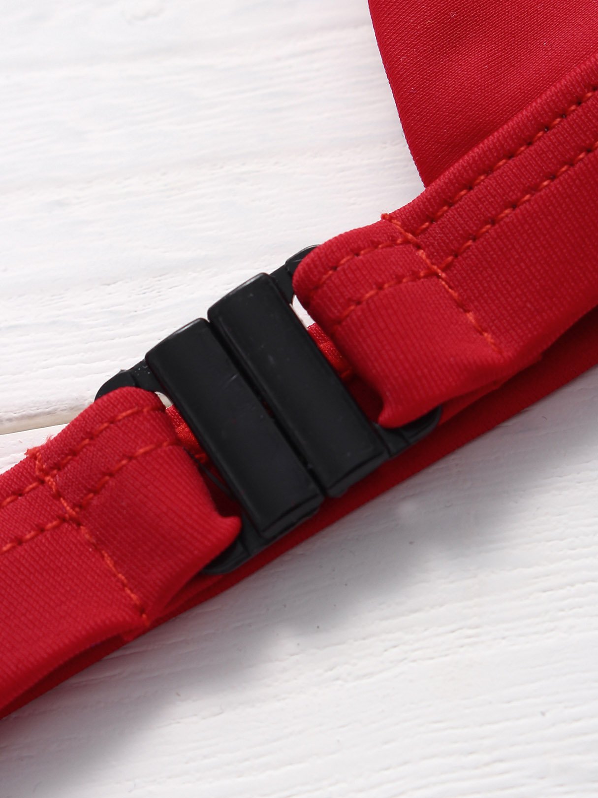 Red V-Neck Zip Front High Waist 2 Piece Bikinis