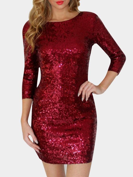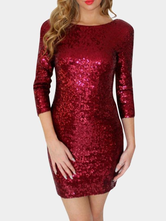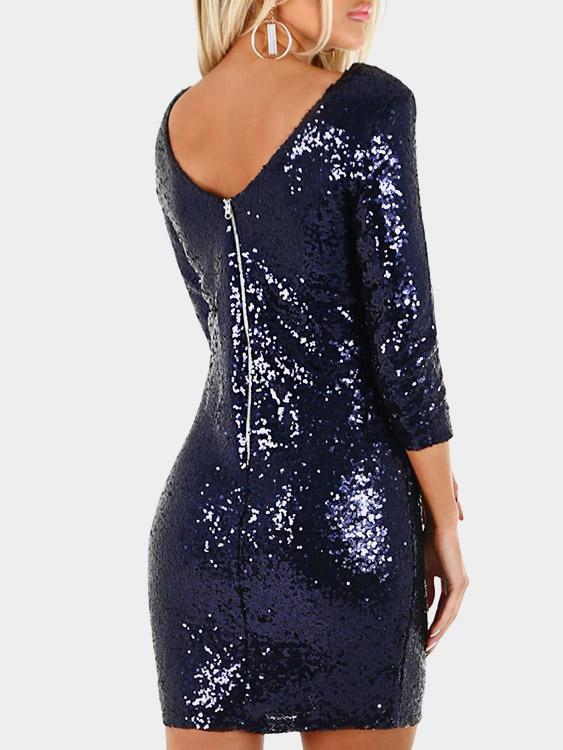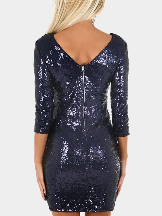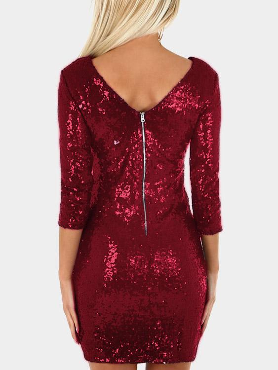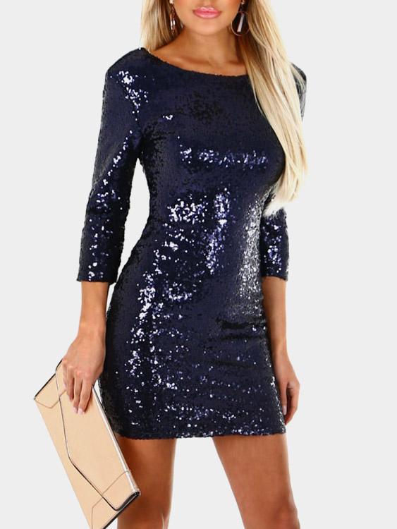 Round Neck 3/4 Length Sleeve Zip Back Mini Dresses