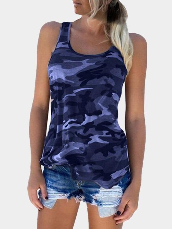 Round Neck Camouflage Sleeveless Purple Tank Top
