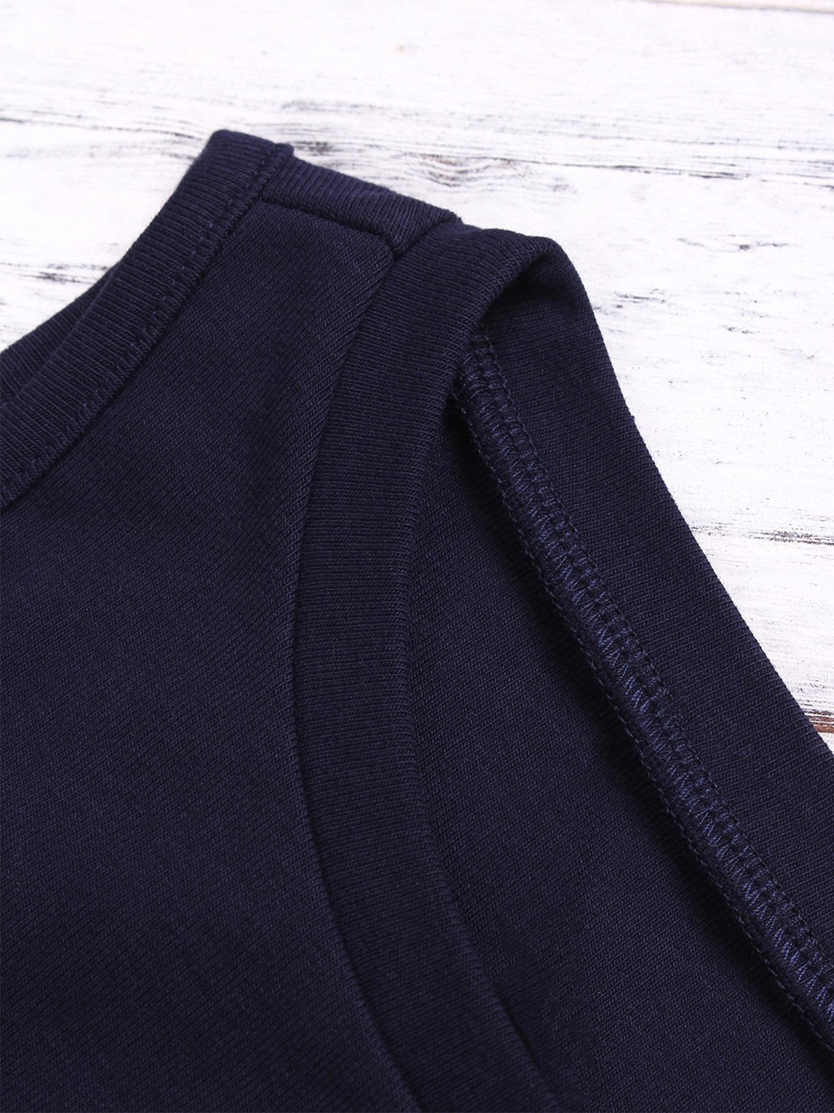 Round Neck Cut Out Sleeveless Navy Tank Top