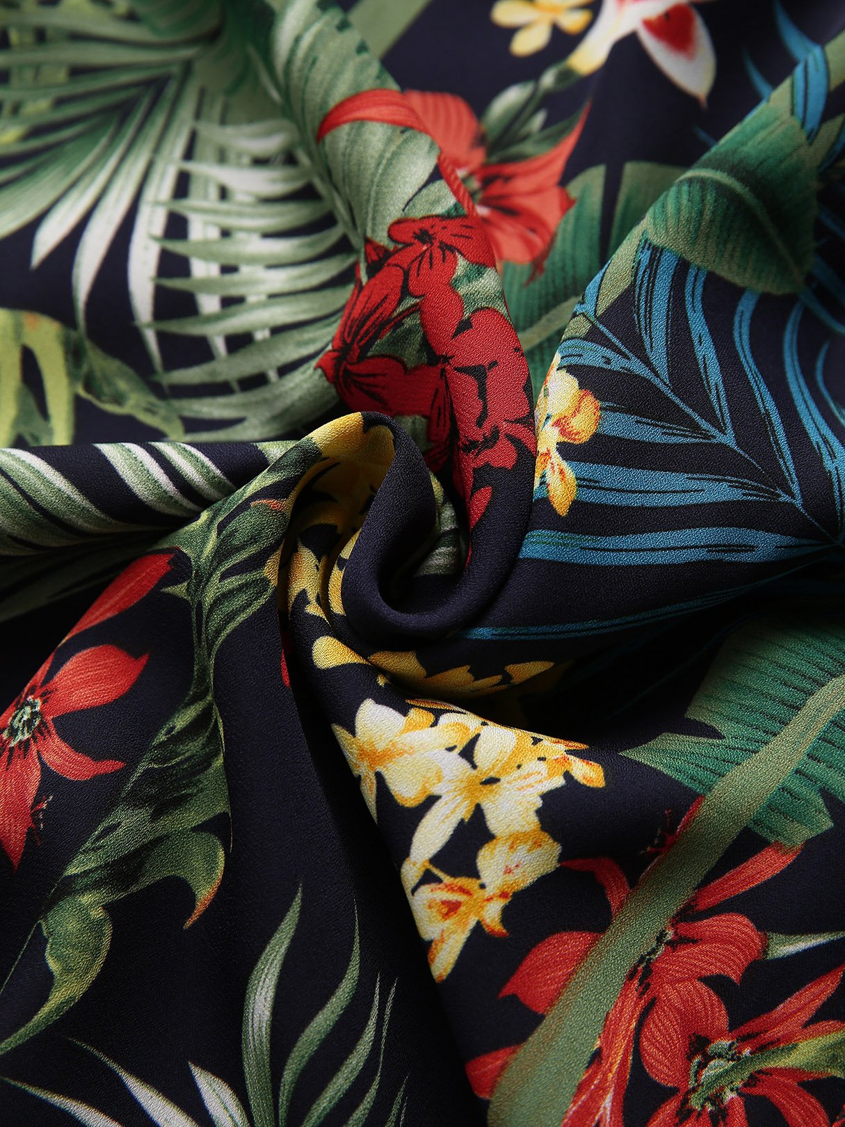 Round Neck Floral Print Criss-Cross Sleeveless Navy Camis