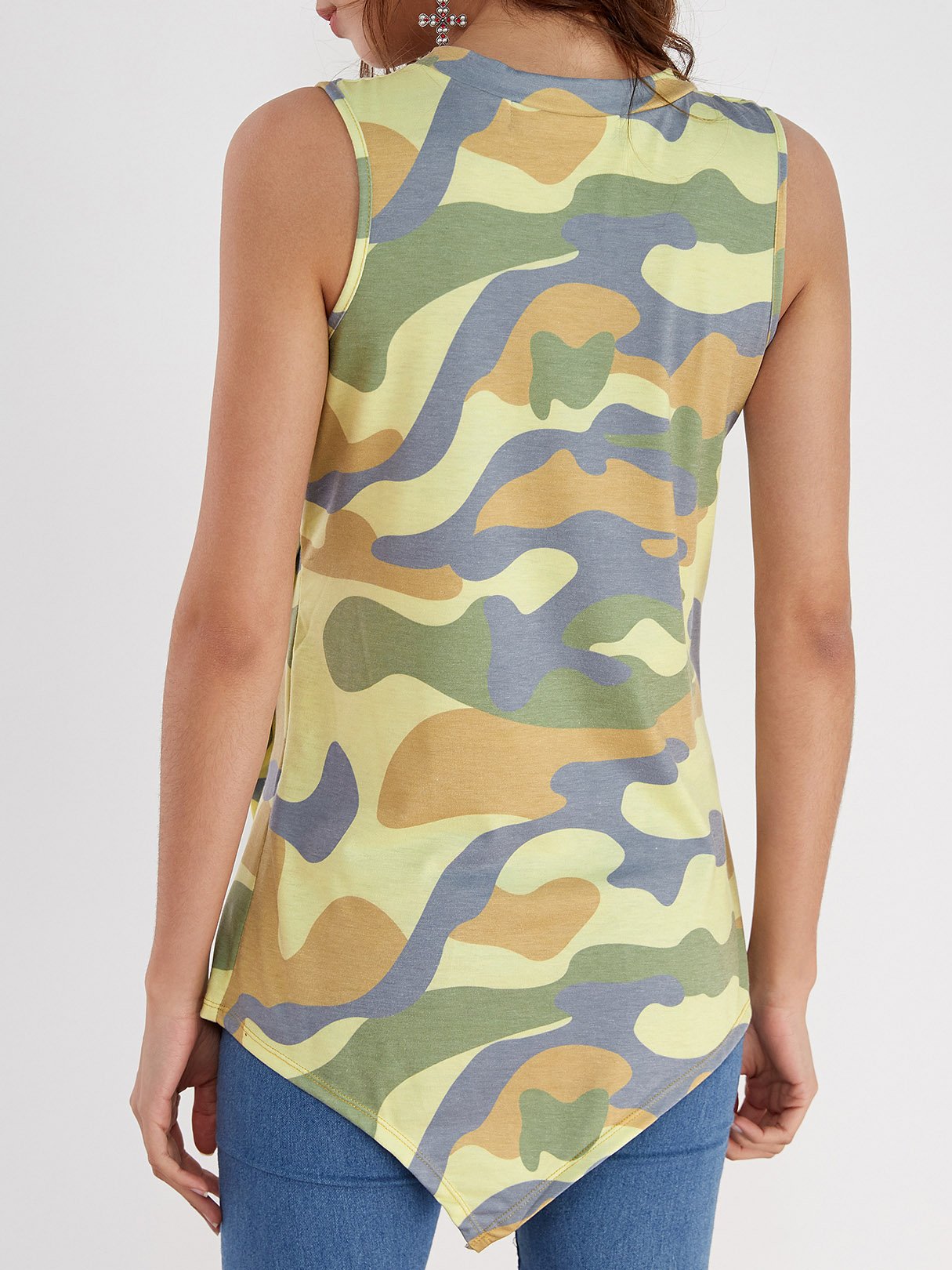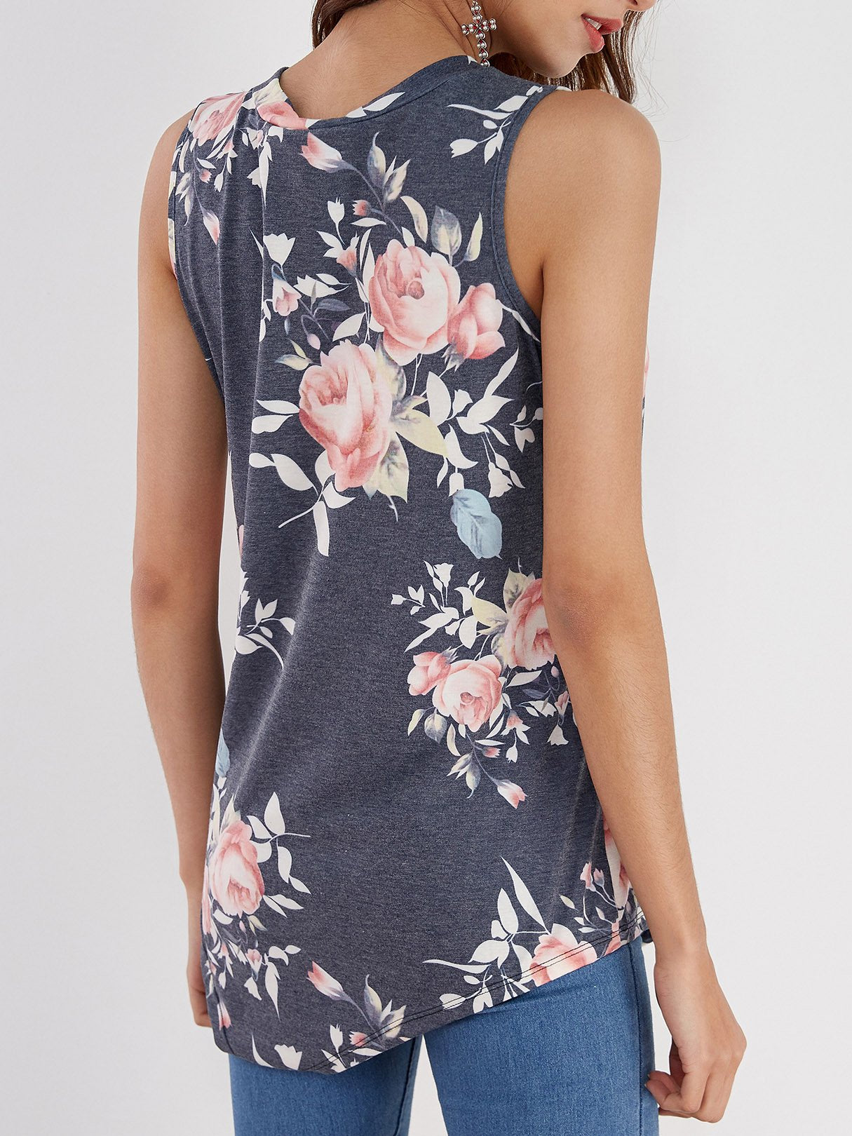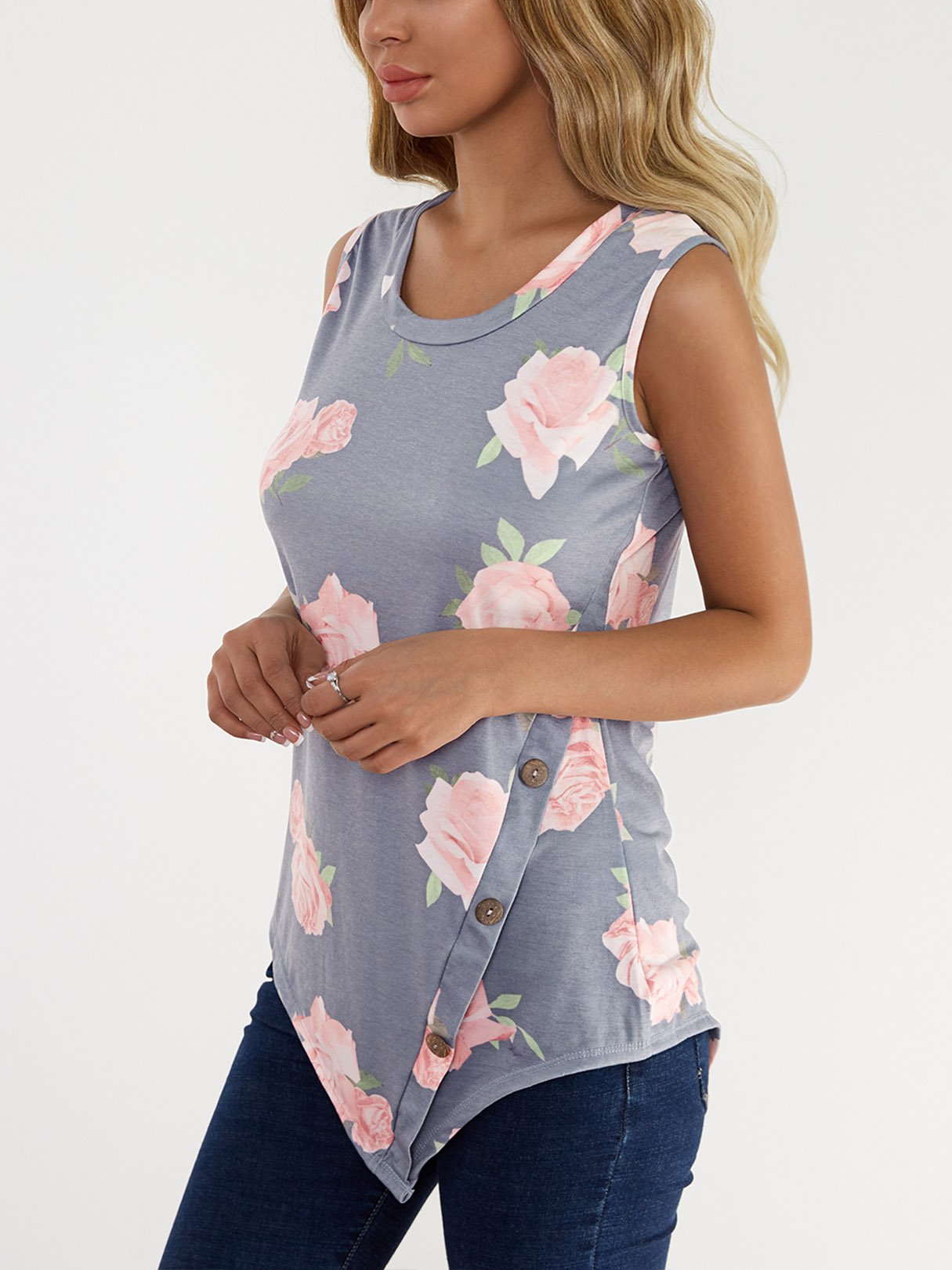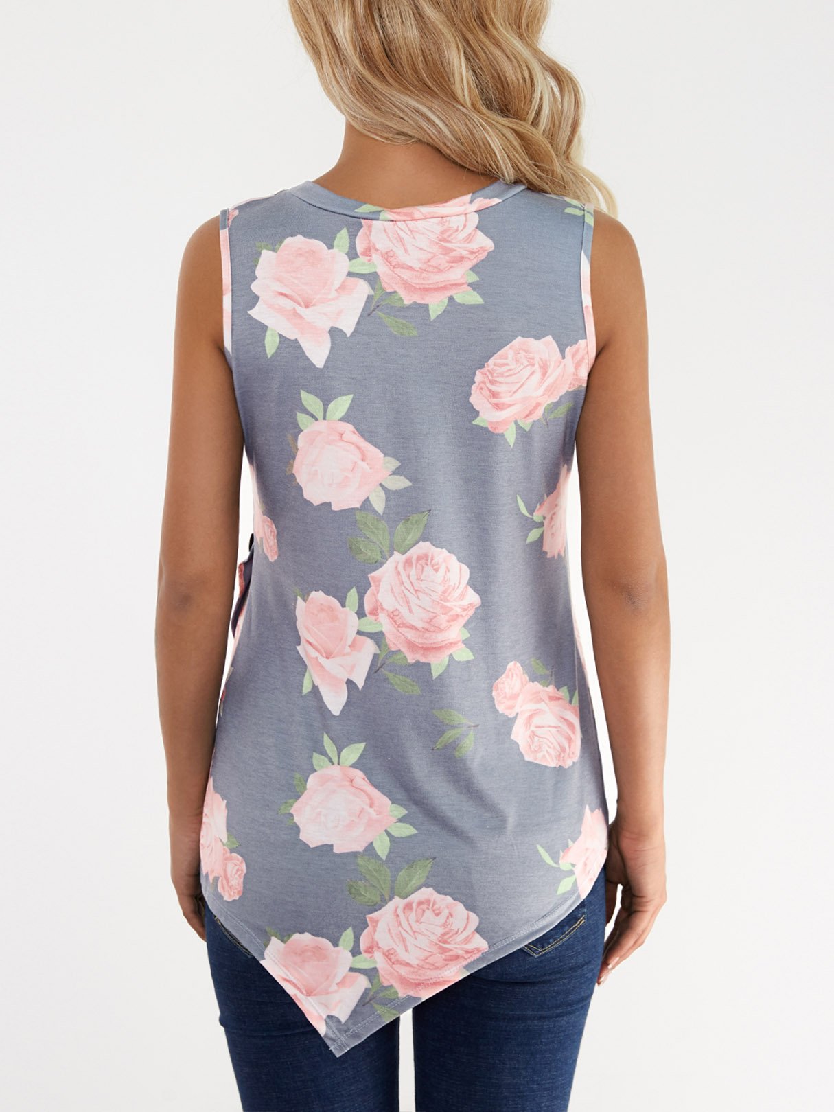 Round Neck Floral Print Sleeveless Irregular Hem Tank Top