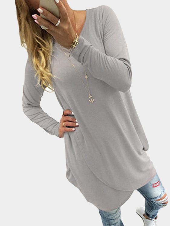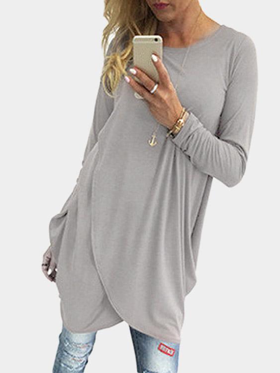 Round Neck Long Sleeve Irregular Hem Grey Mini Dress
