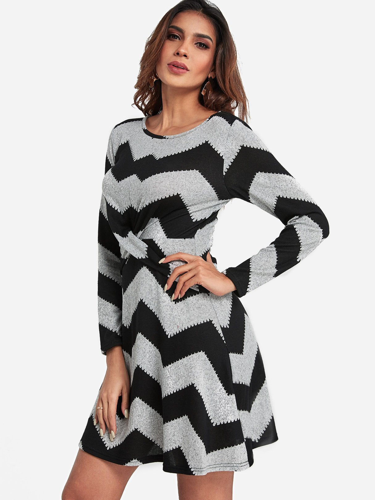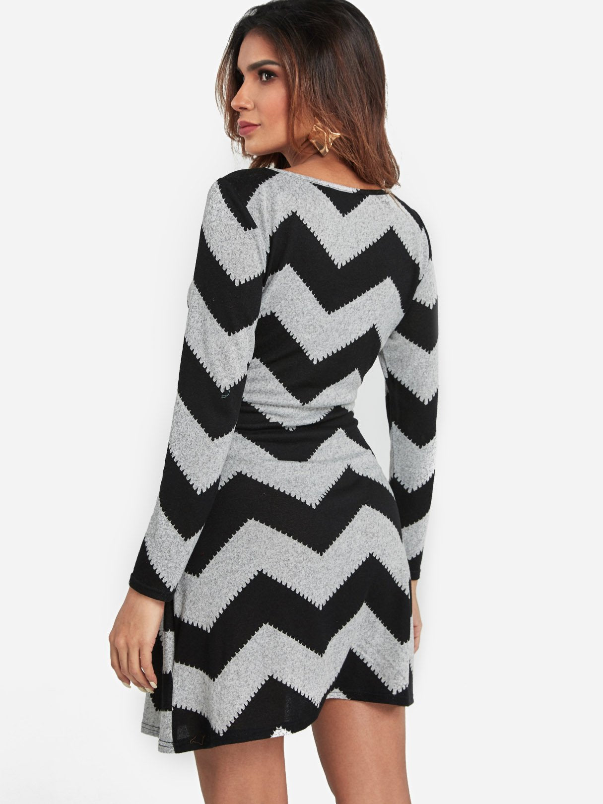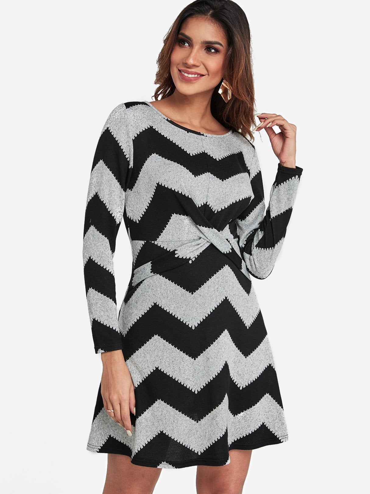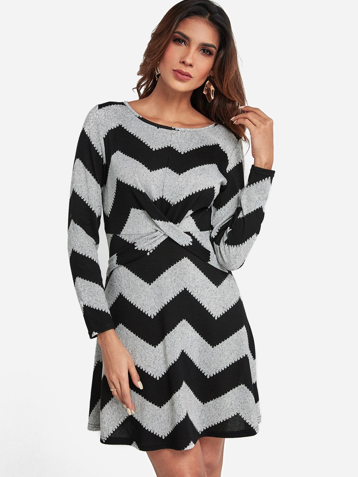 Round Neck Long Sleeve Stripe Twist Mini Dress