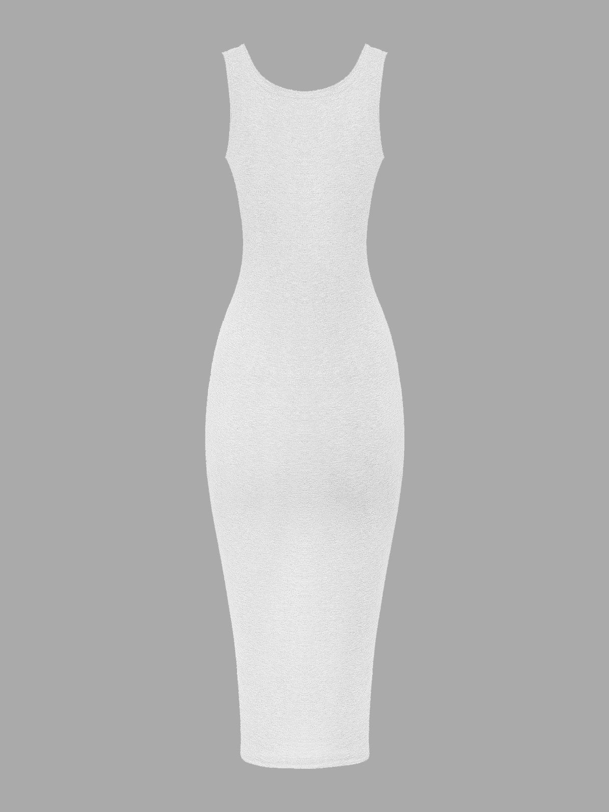 Round Neck Plain Backless Sleeveless White Midi Dress