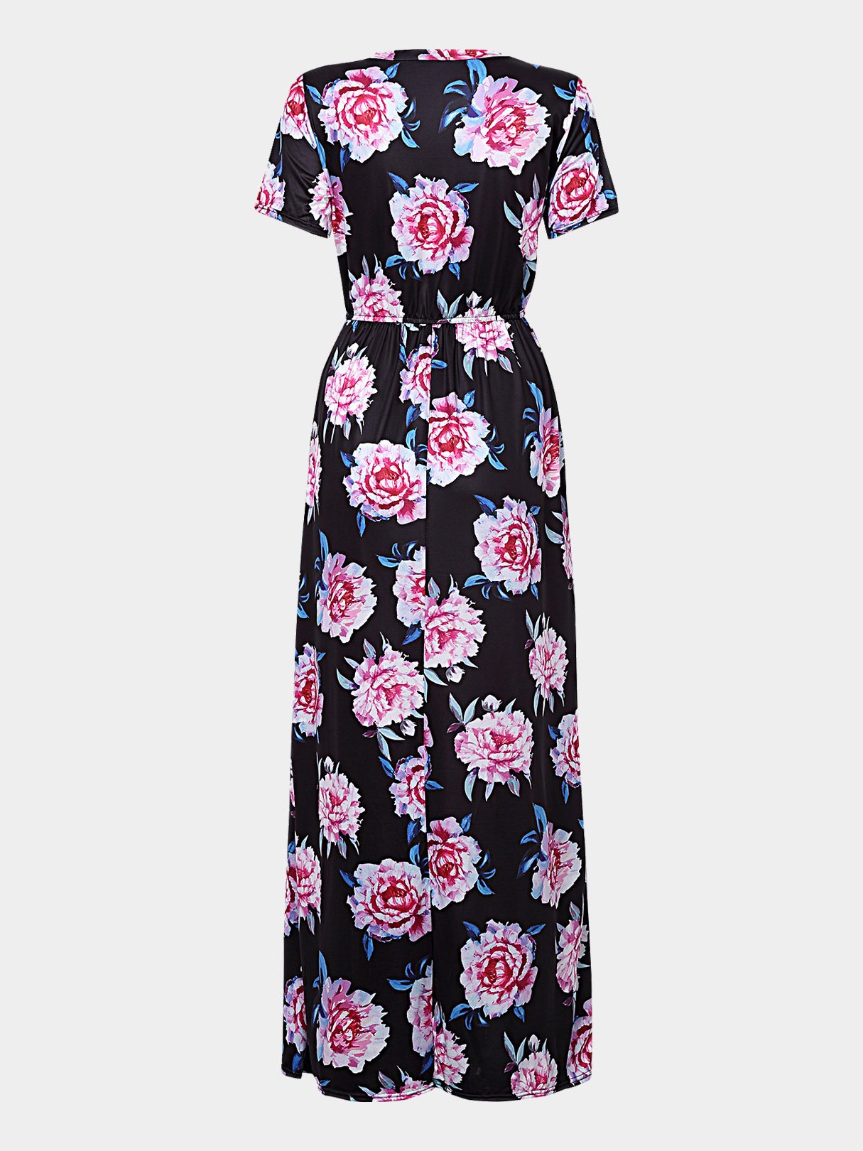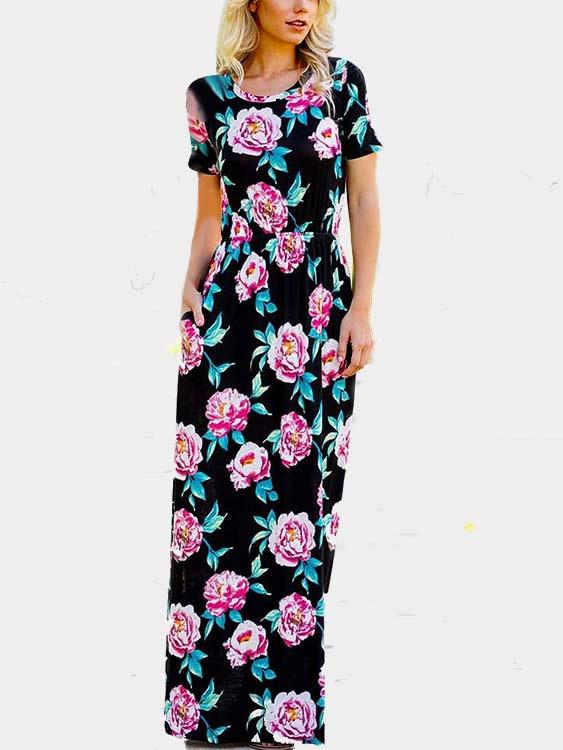 Round Neck Short Sleeve Floral Print Maxi Dress