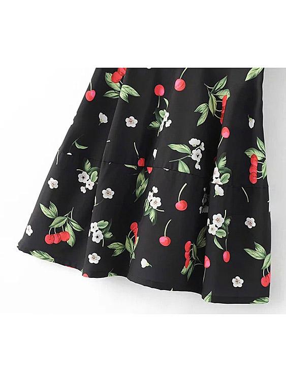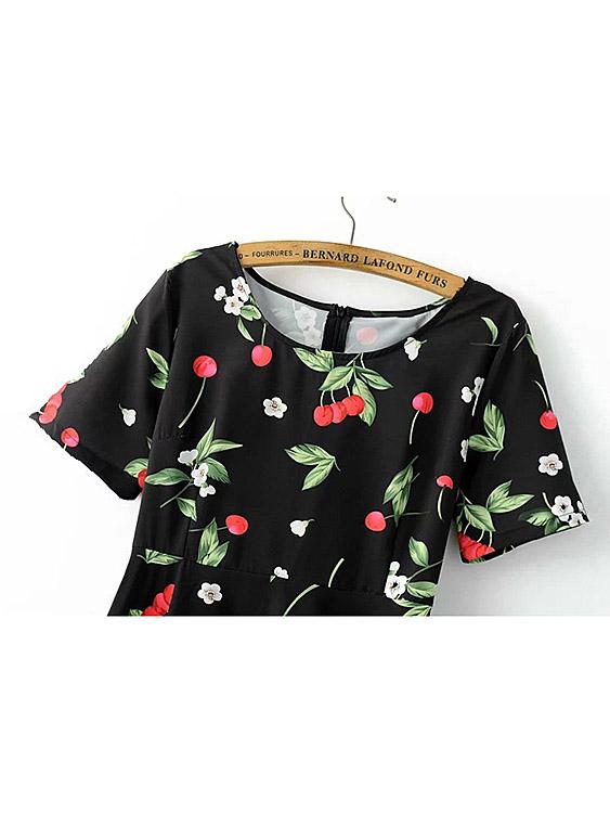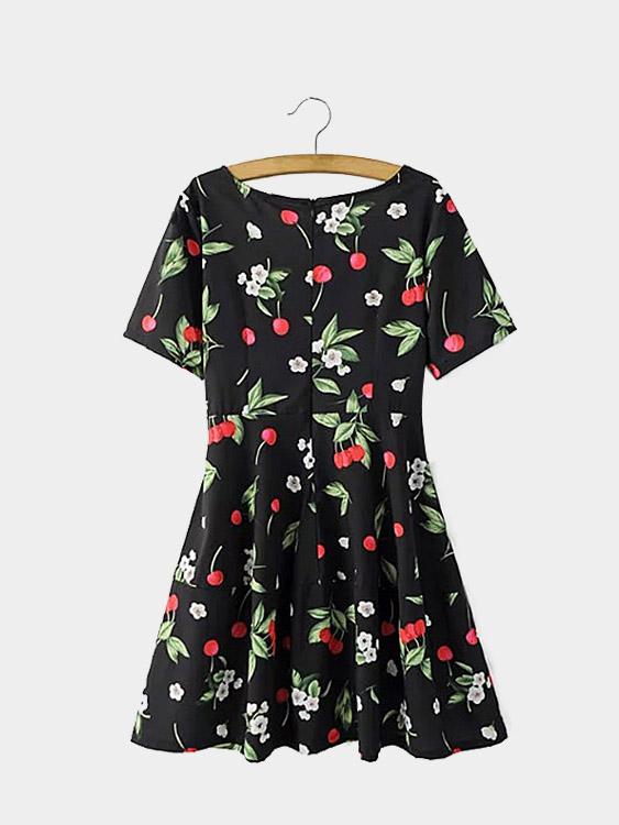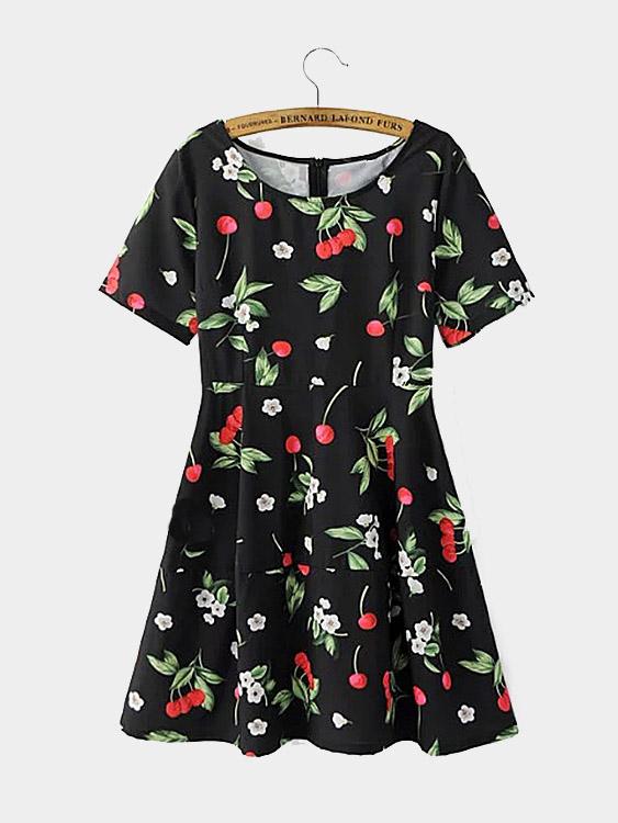 Round Neck Short Sleeve Floral Print Zip Back Mini Dresses