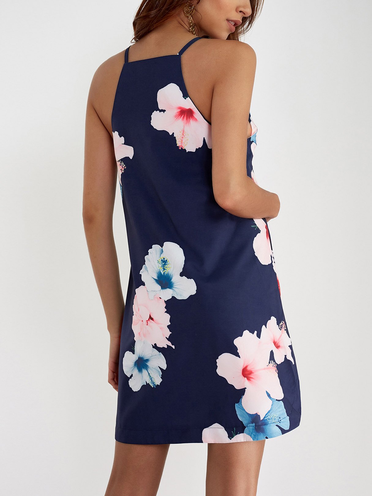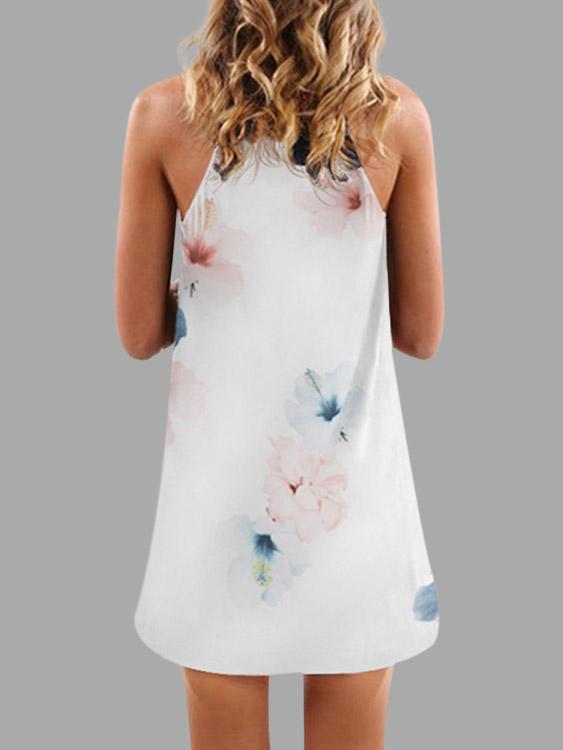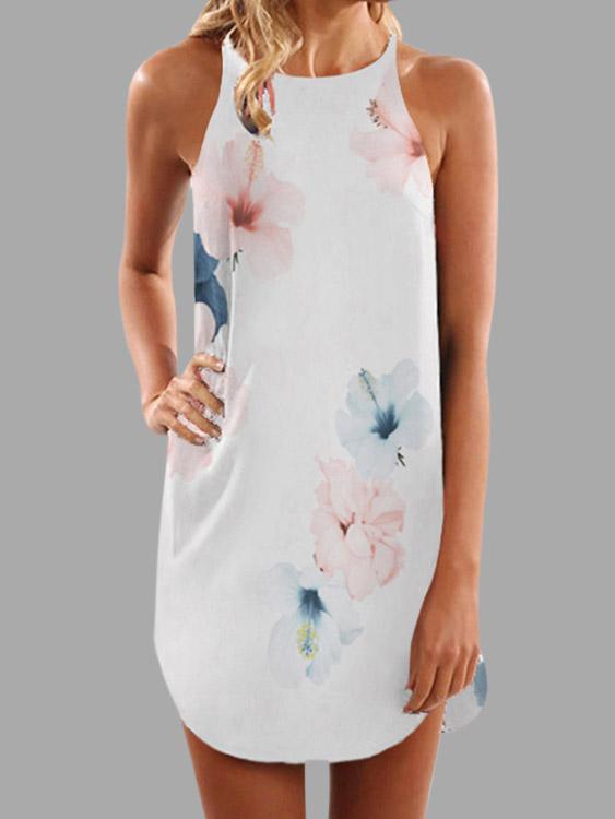 Round Neck Sleeveless Floral Print Curved Hem Dresses