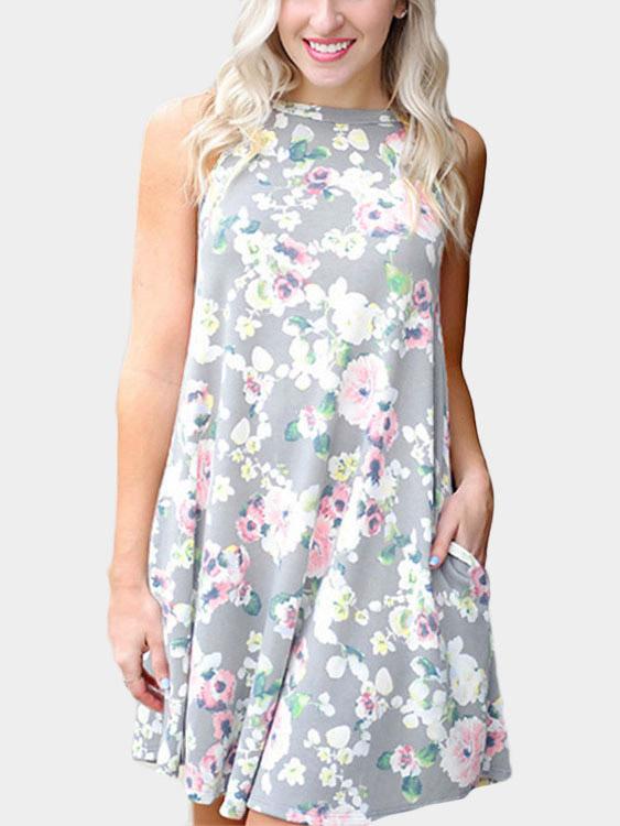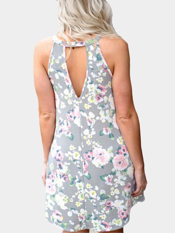 Material:PolyesterNeckline:Round NeckSeason:Spring,SummerSleeves:SleevelessPattern:Floral PrintStyle:Casual Style,Vacation StyleDetail:Cut OutLength:MiniFit:Regular FitOccasion:Vacation