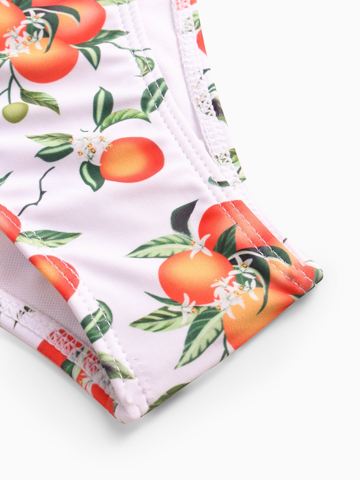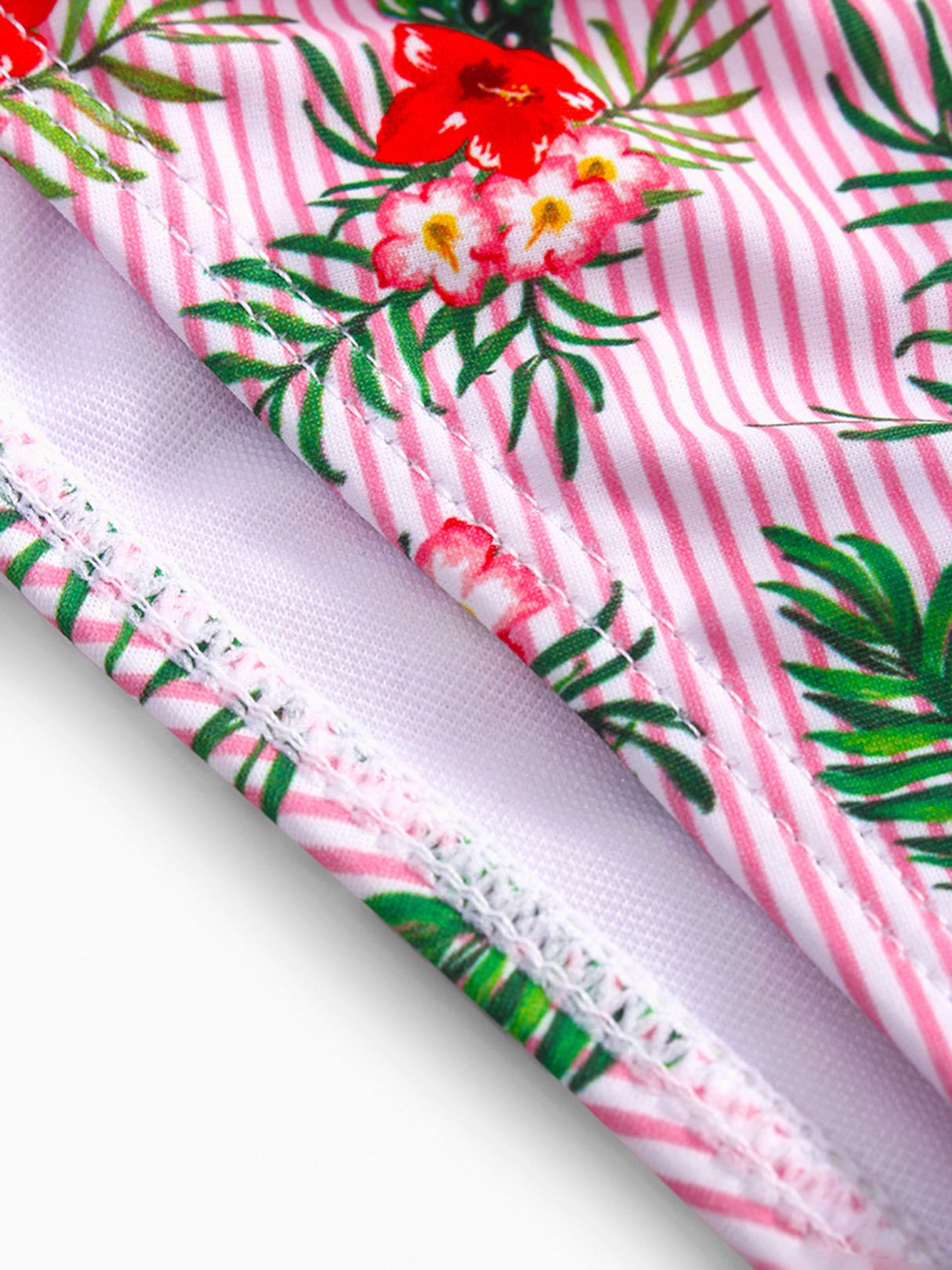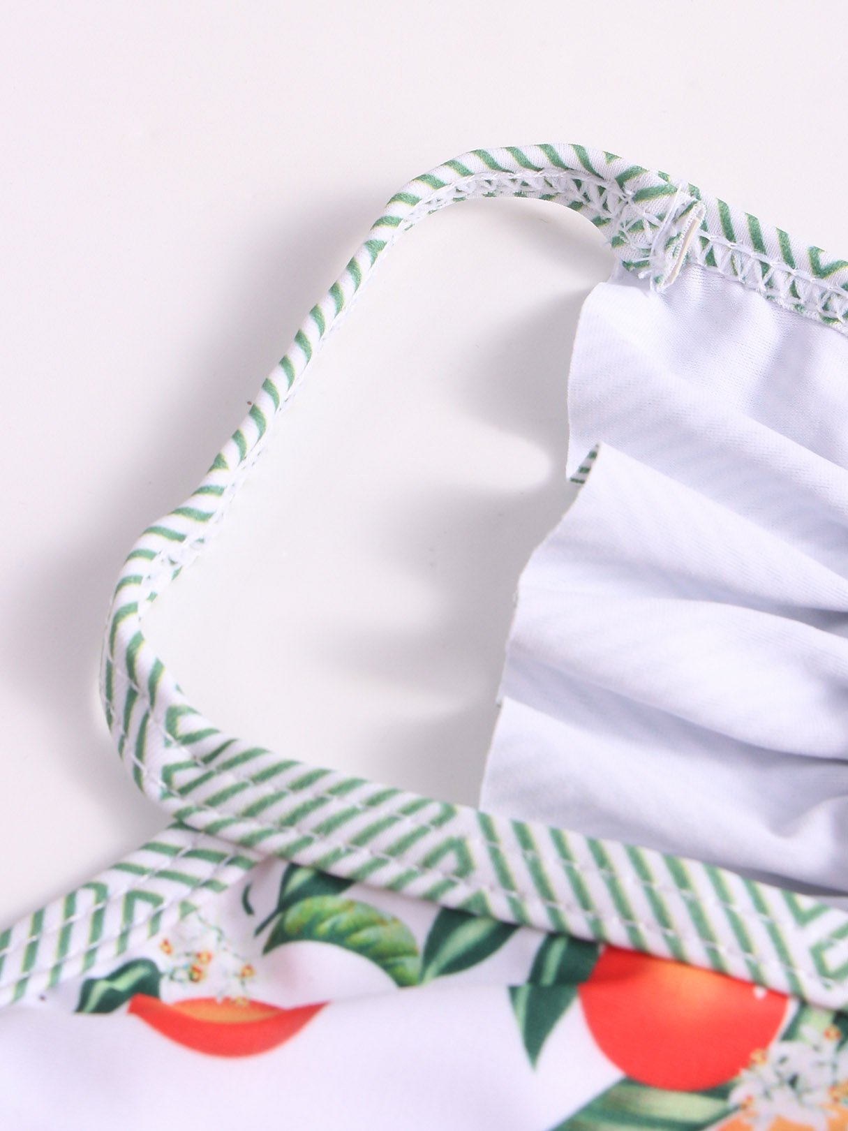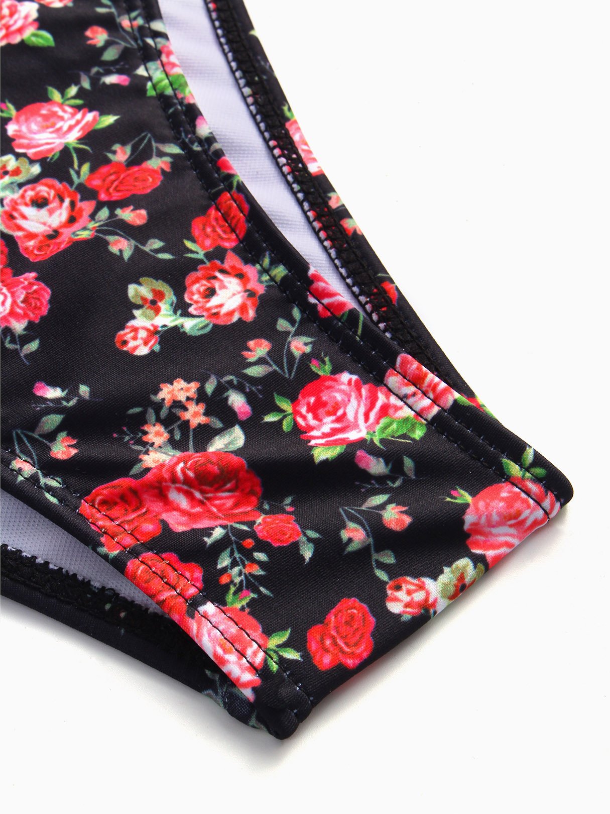 Round Neck Sleeveless Floral Print Tie-Up Ruffle Trim Ruffle Hem Two Piece Bikinis