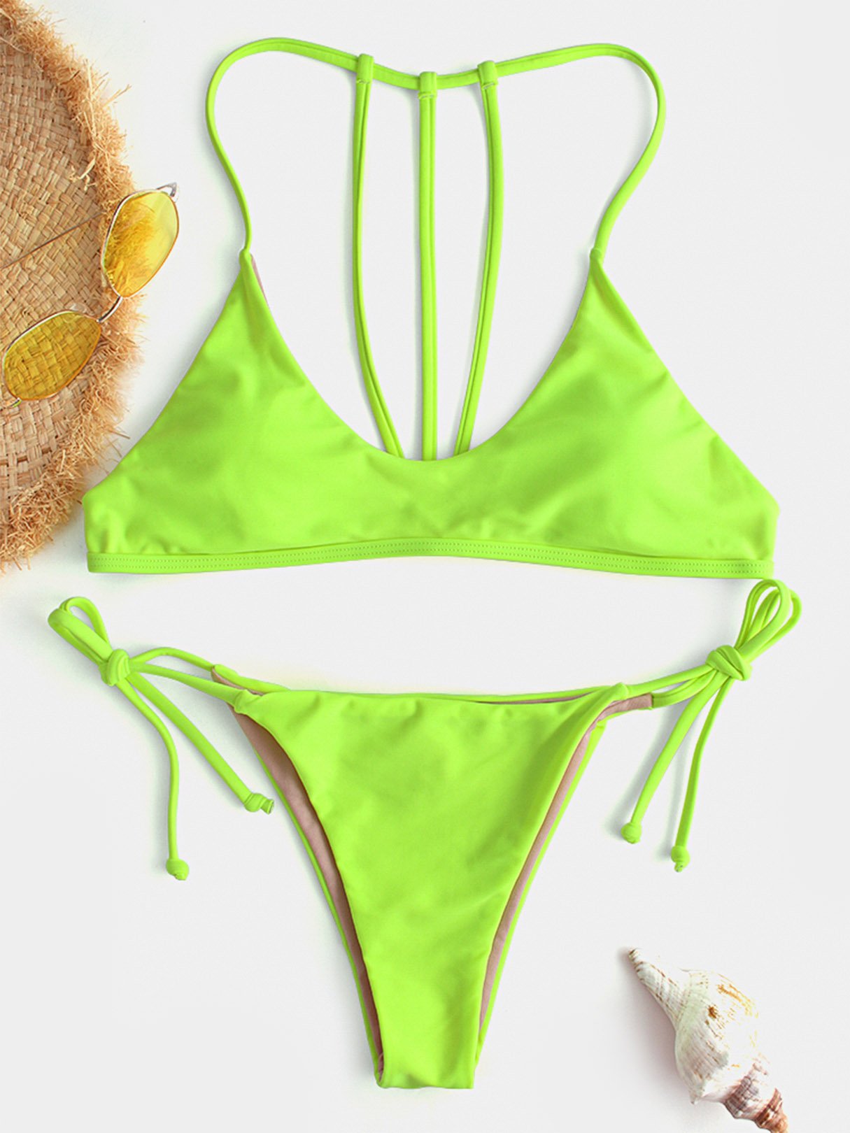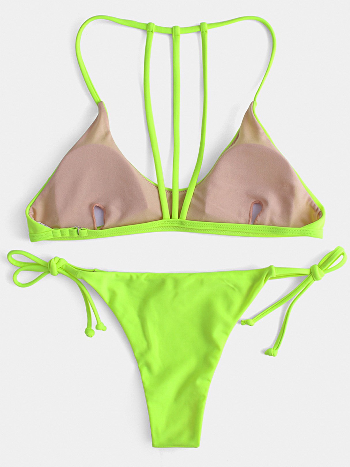Scoop Neck Backless Tie-Up Sleeveless Green Bikinis