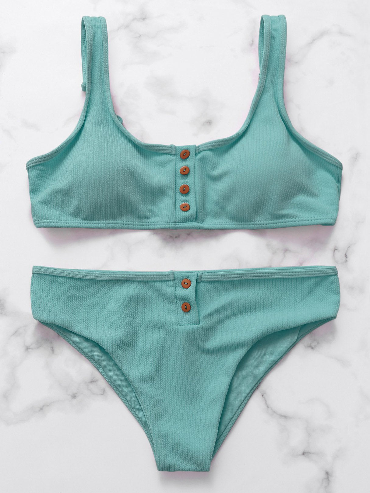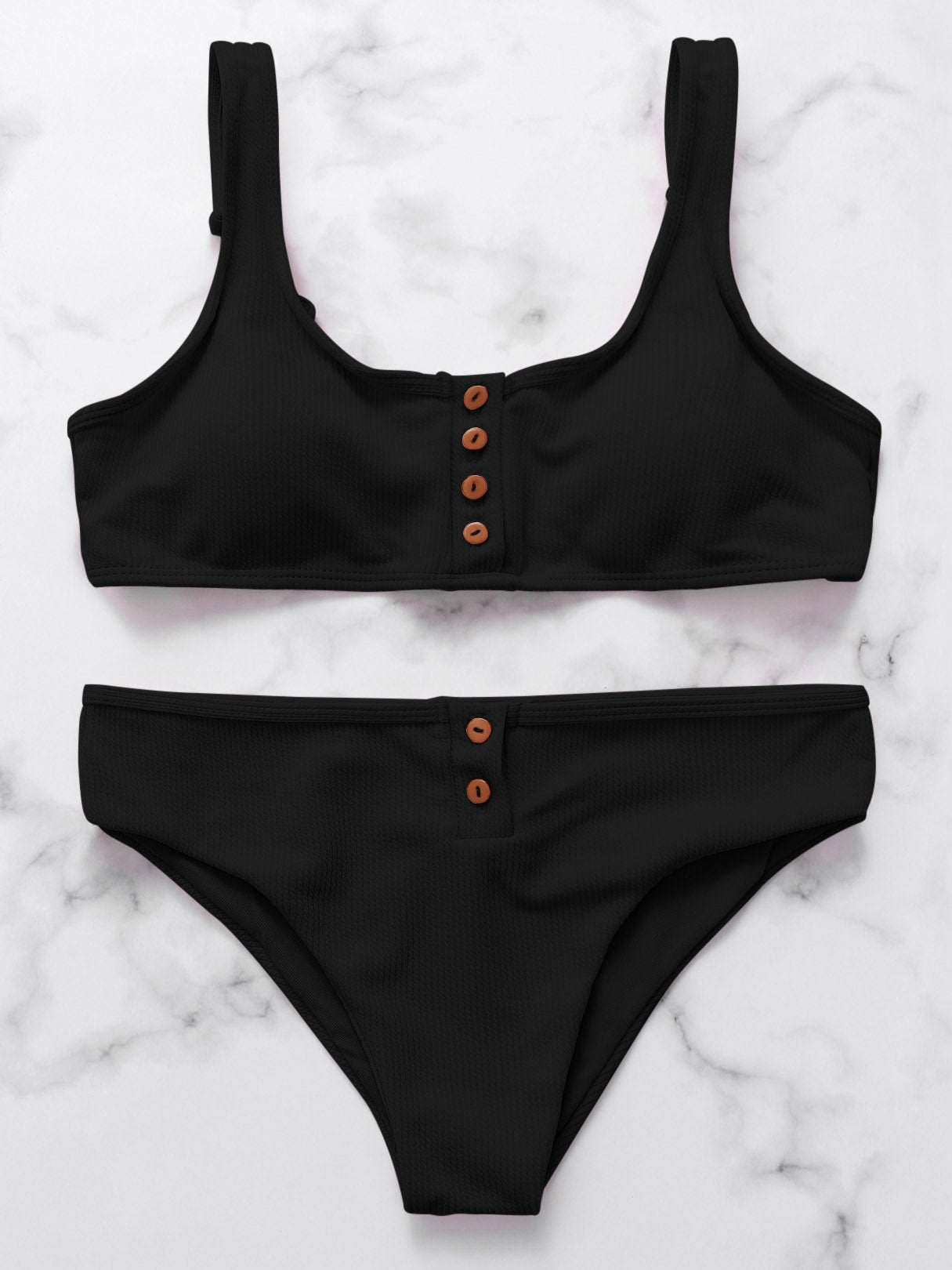 Scoop Neck Button-down Bikini Set Swimwear