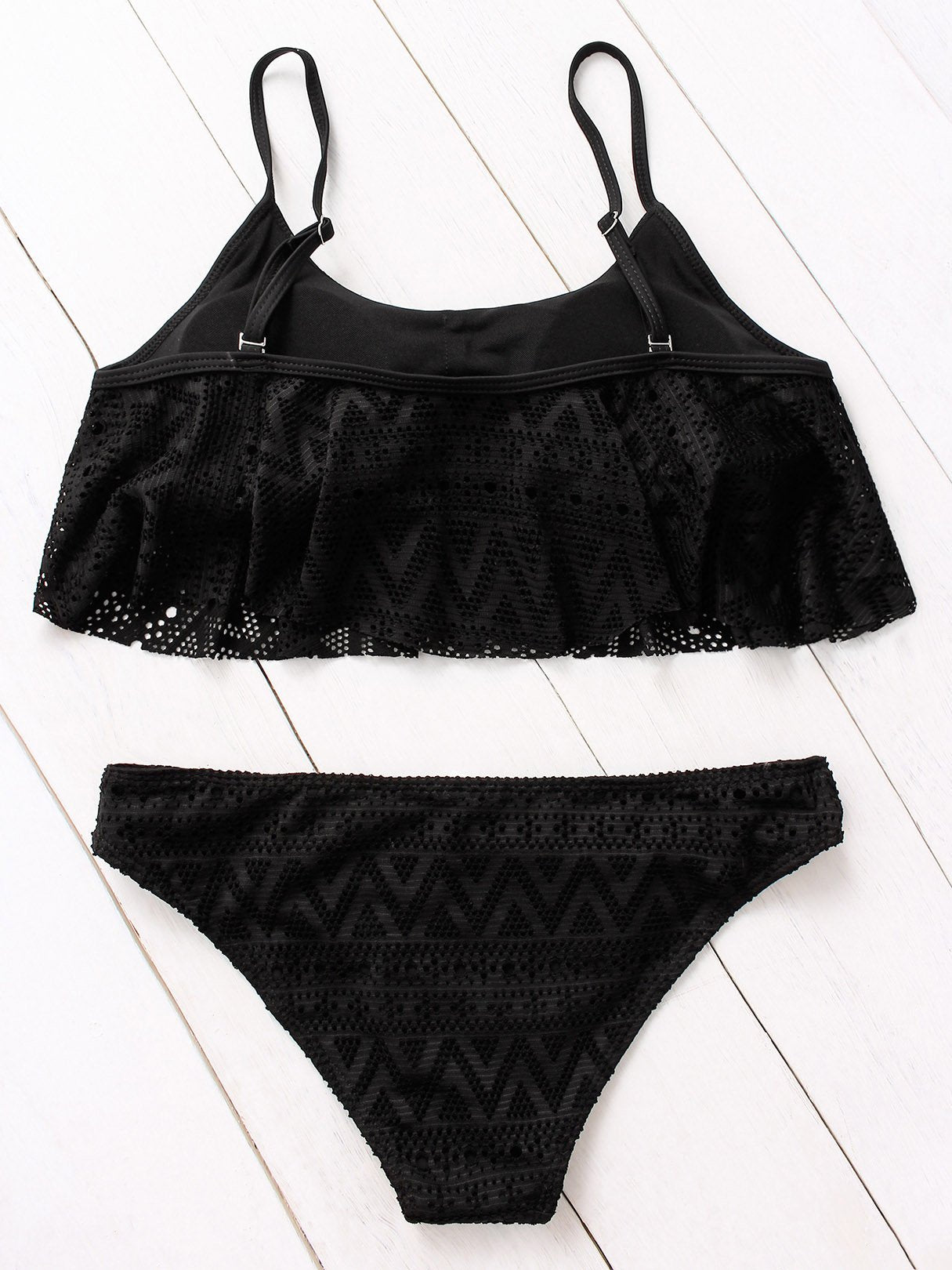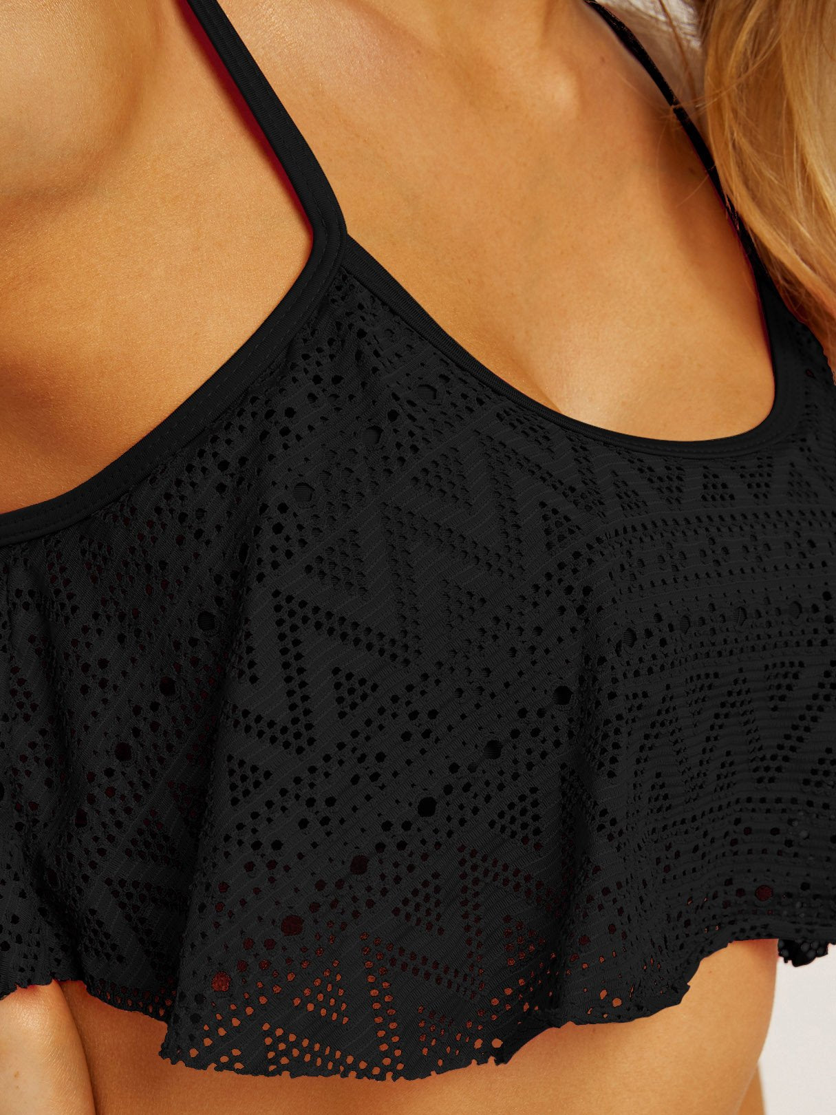 Scoop Neck Lace Double Layer Flounced Hem Two Piece Bikinis