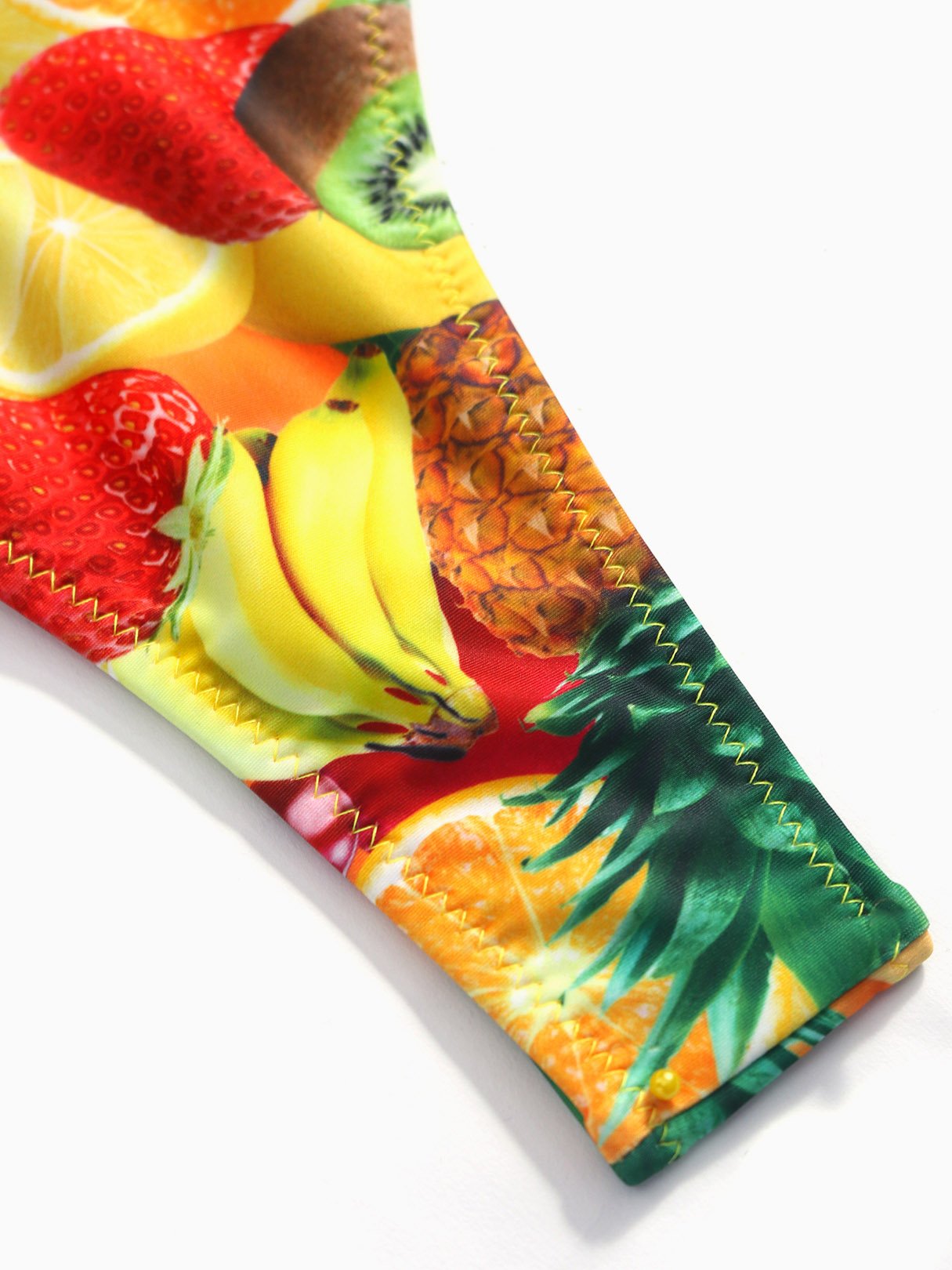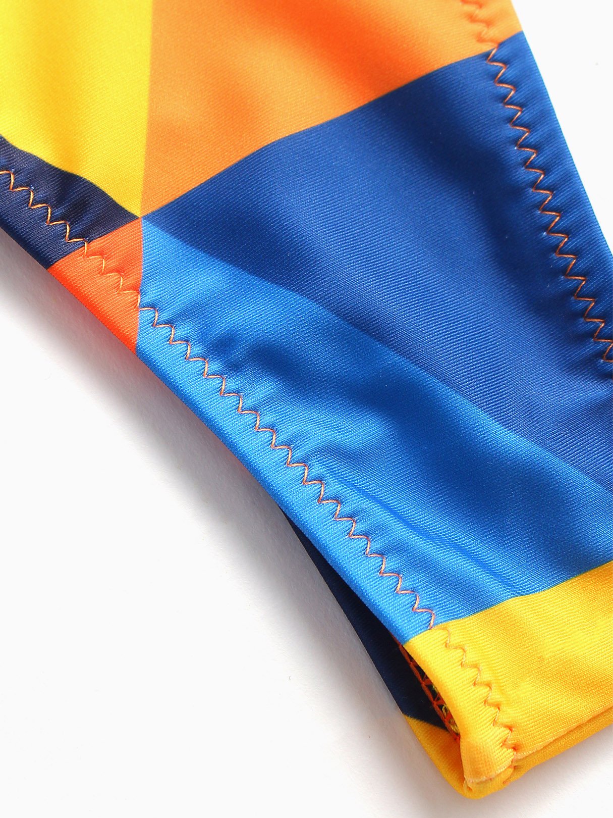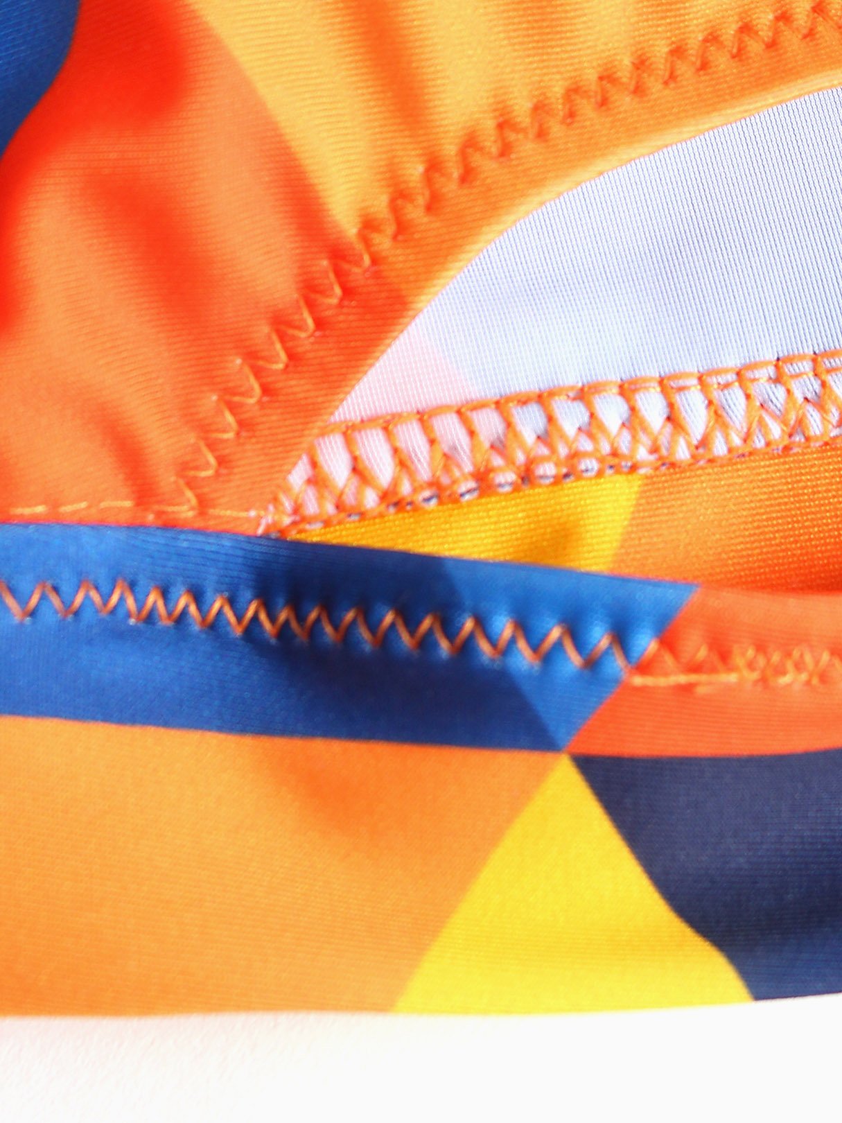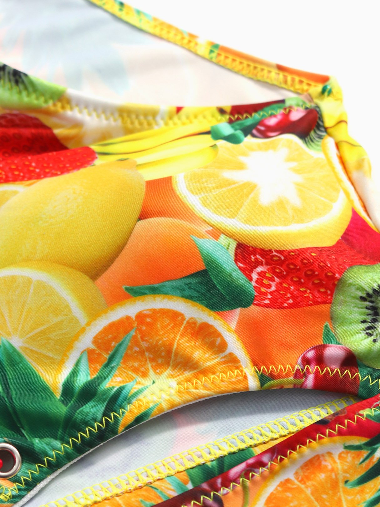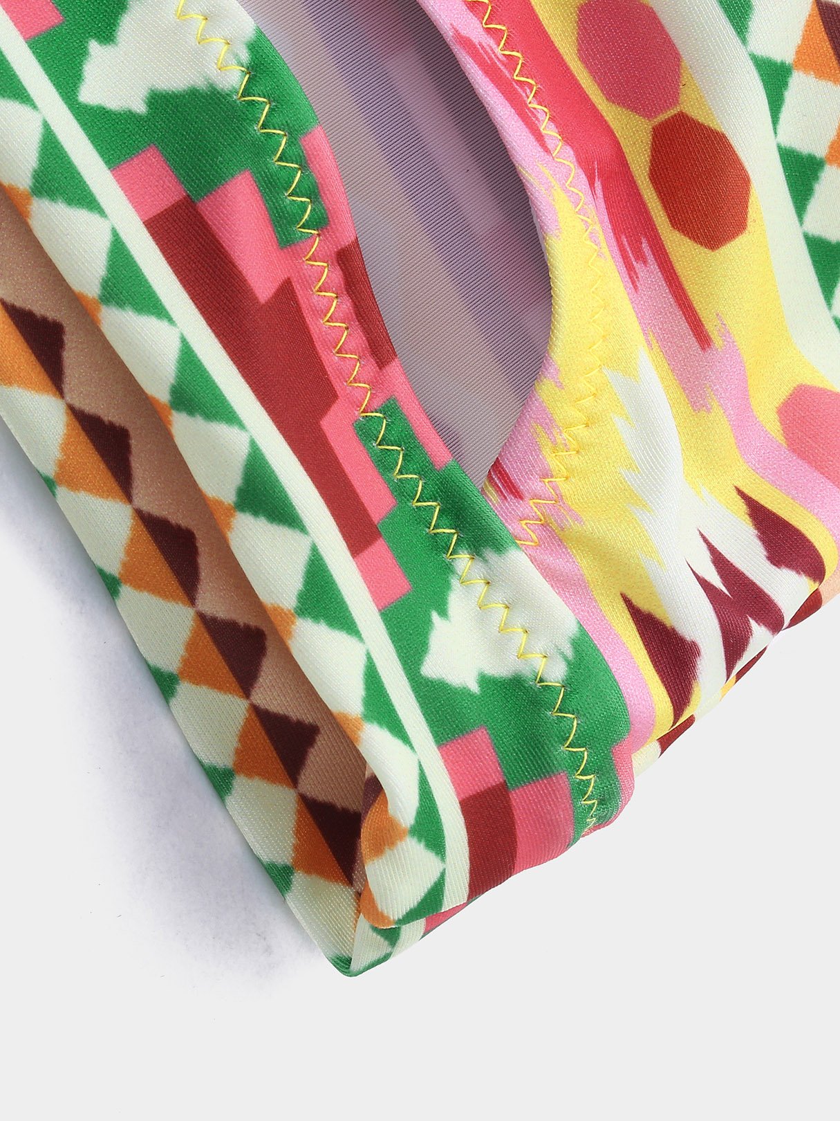 Scoop Neck Sleeveless Printed Crossed Front Lace-Up Cut Out Bikinis