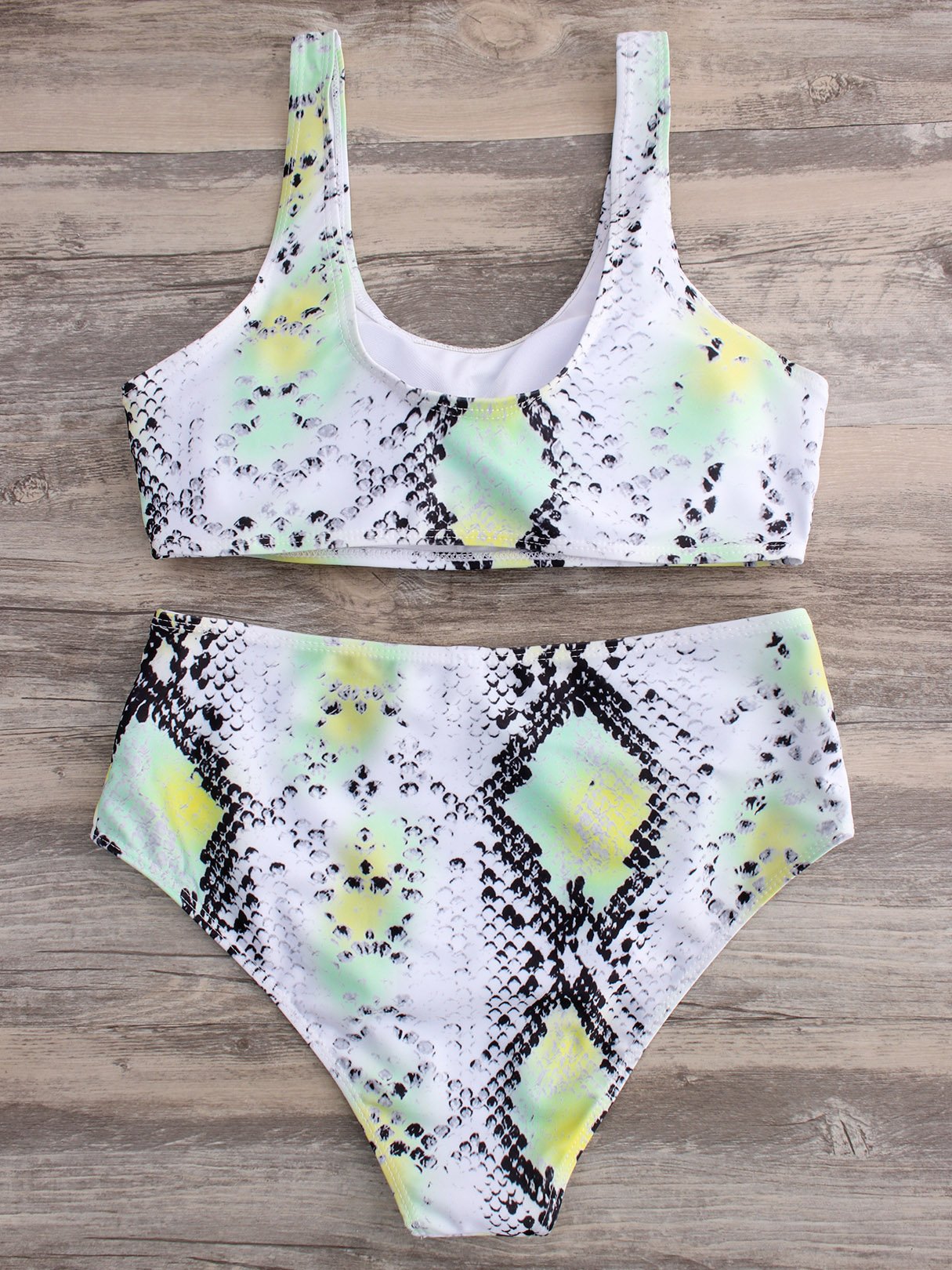 Scoop Neck Snake Sleeveless High-Waisted Bikini Set