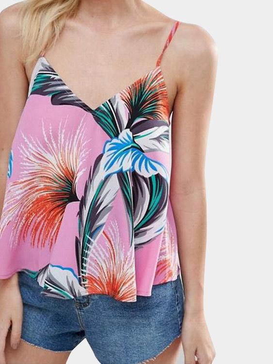 Material:PolyesterNeckline:V-NeckSeason:Spring,SummerSleeves:SleevelessPattern:Floral PrintType:LooseFit:Loose Fit