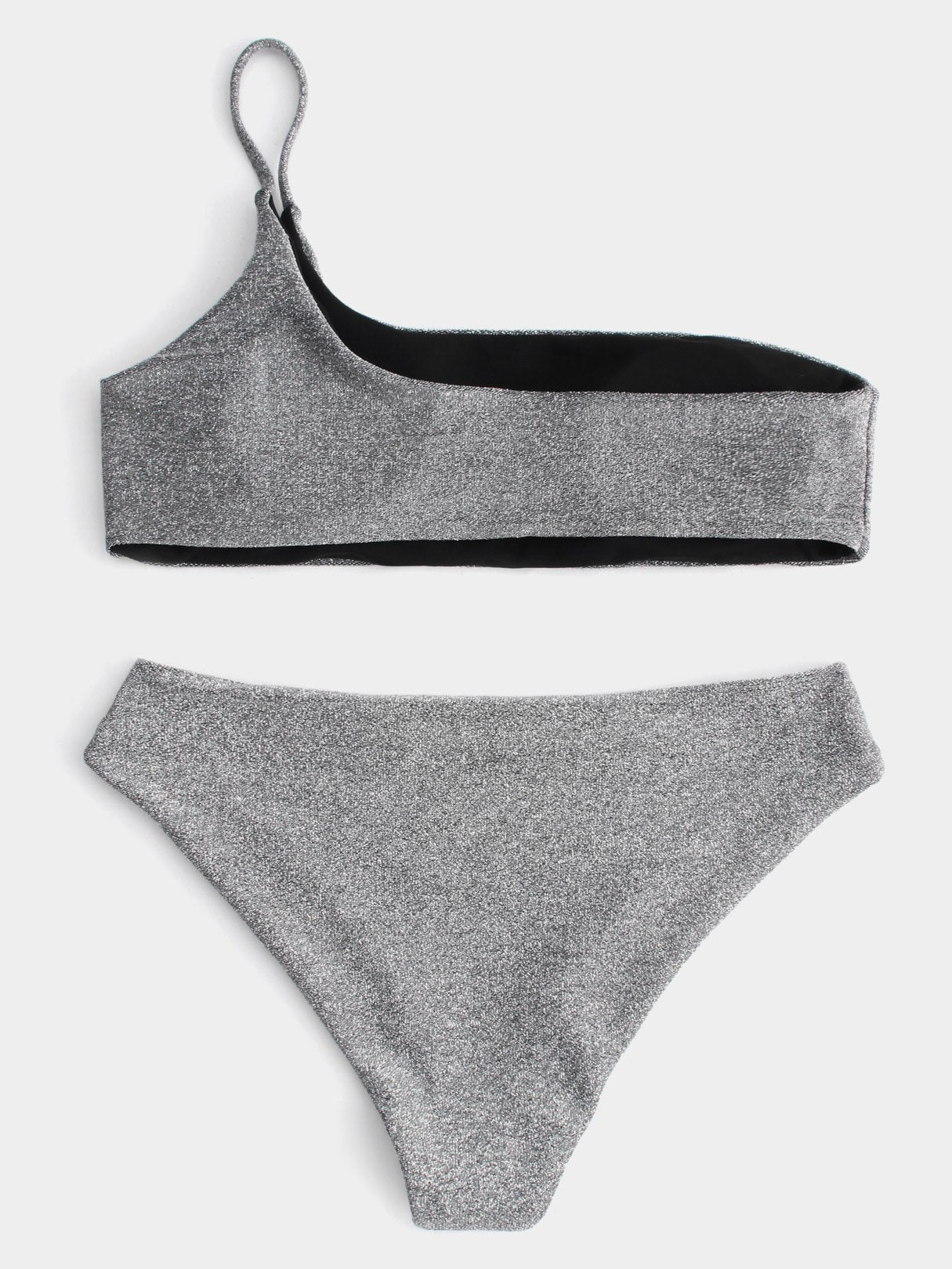 Silver Asymmetrical One Shoulder Bikini Swimsuit