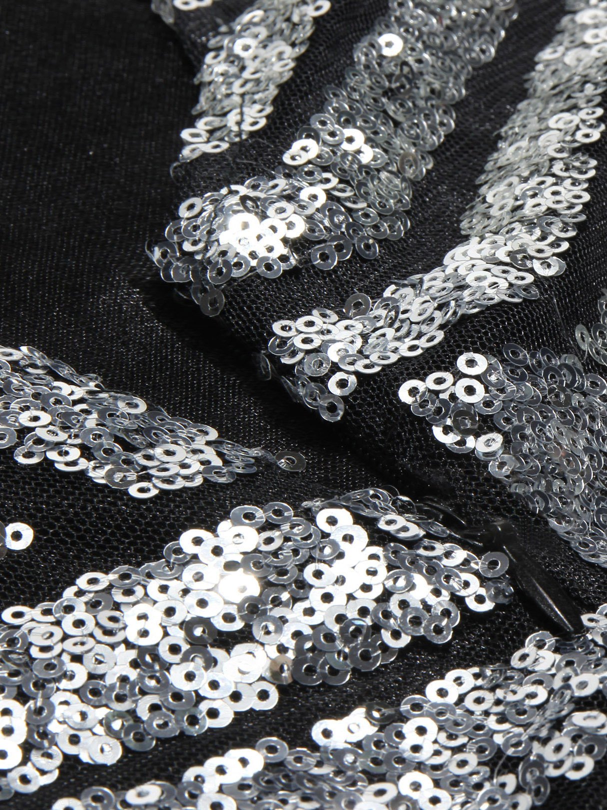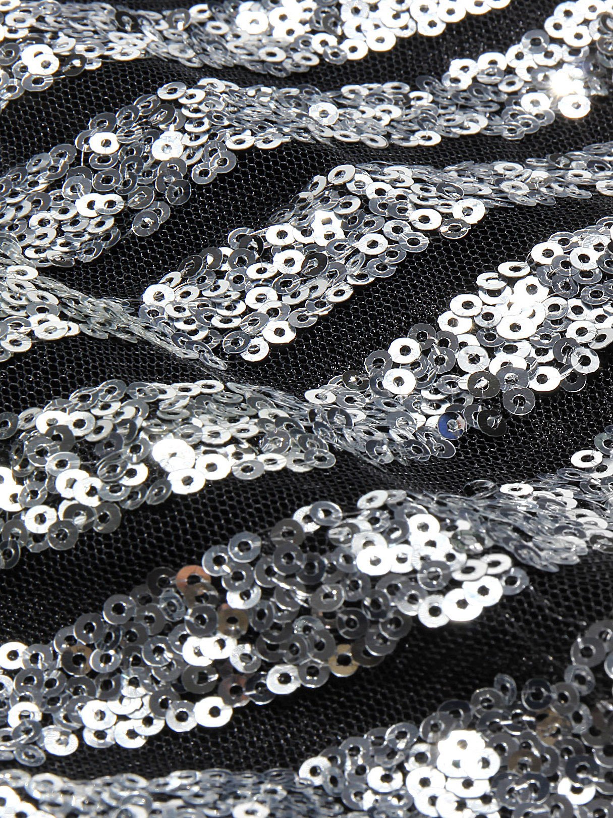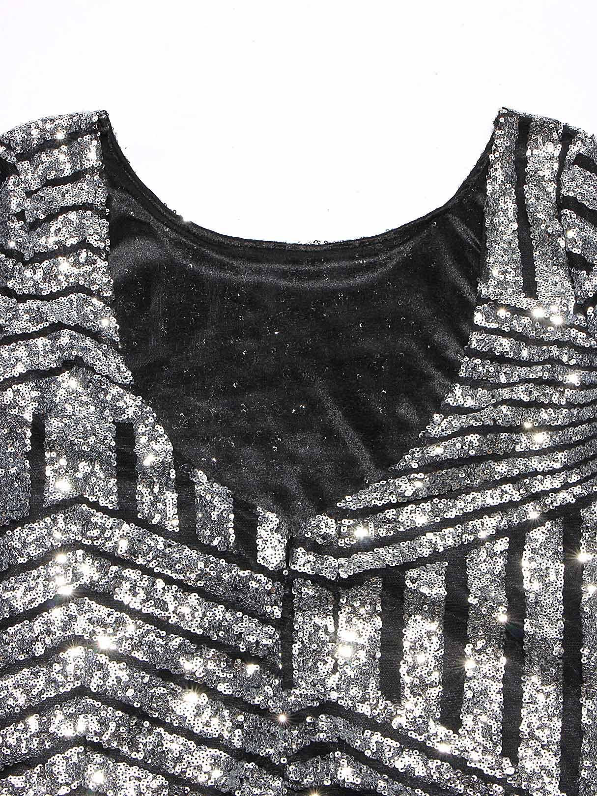 Silver Crew Neck Short Sleeve Stripe Geometrical Zip Back Sexy Dresses