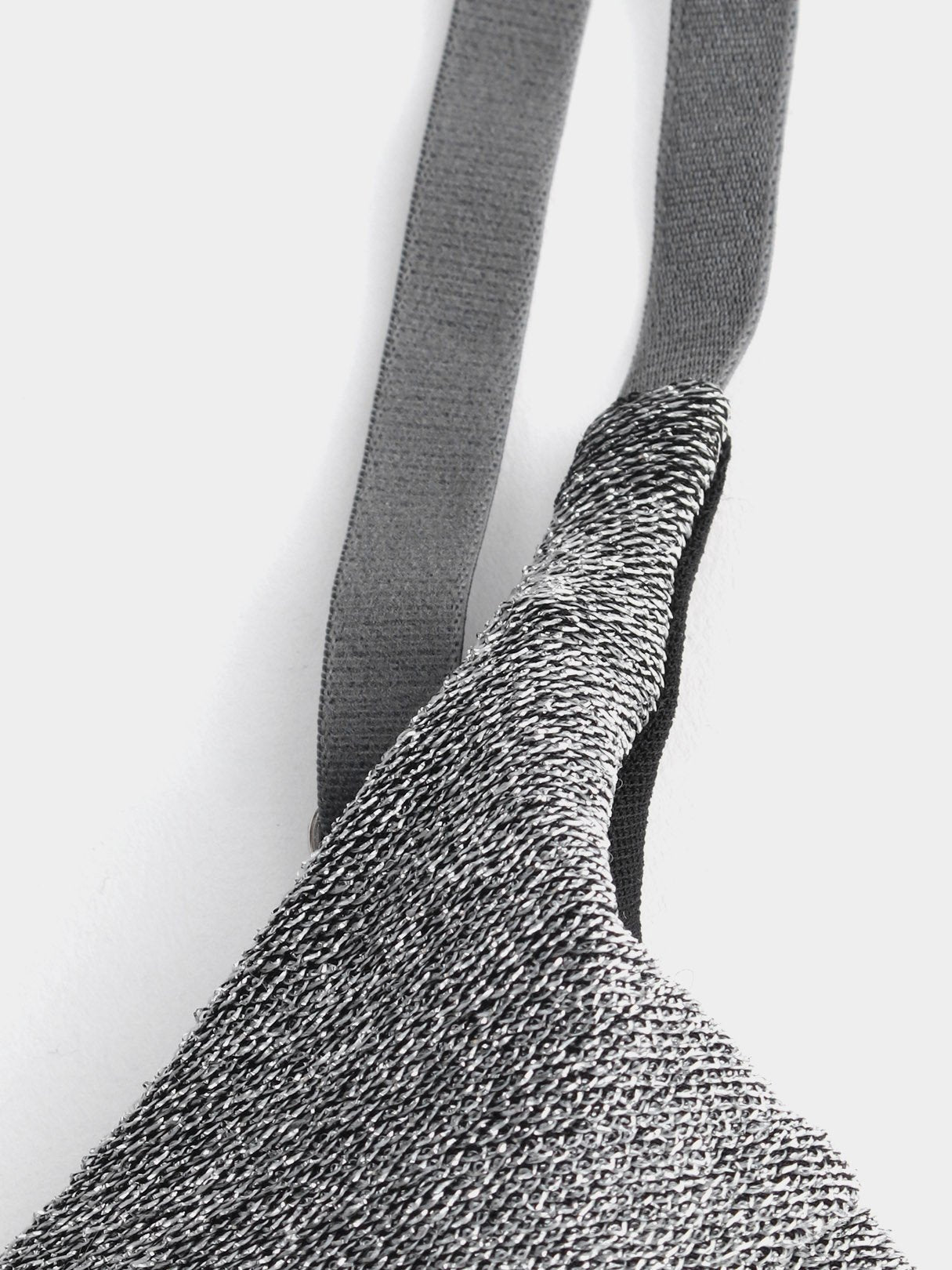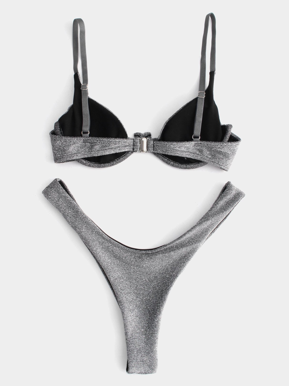 Silver Sleeveless V-Neck Sequins Embellished Bikinis