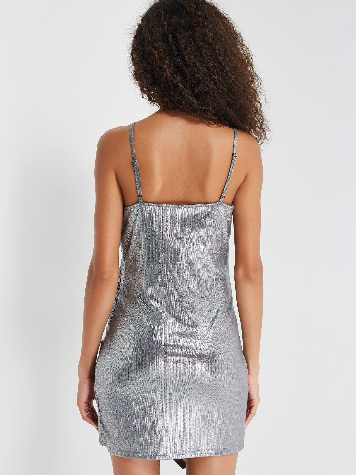 Silver V-Neck Sleeveless Spaghetti Strap Wrap Irregular Hem Sexy Dresses