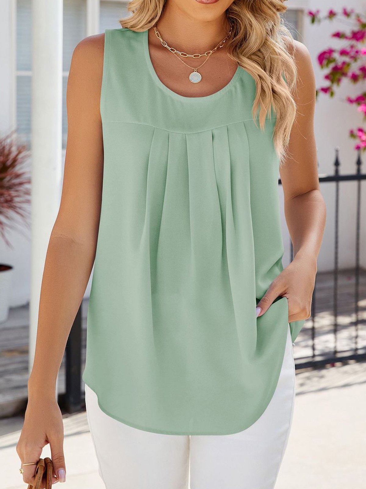 Sleeveless Crew Neck Plain Casual Regular Tank Top