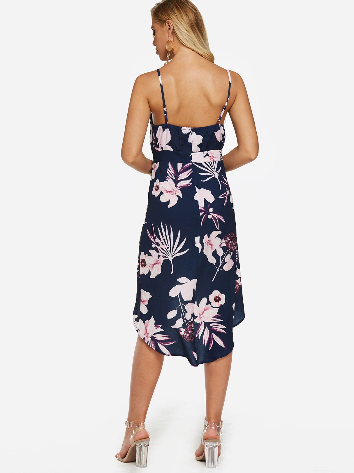 Material:PolyesterSeason:Spring,Summer,AutumnSleeves:SleevelessPattern:Floral PrintStyle:Sexy StyleDetail:Adjustable Shoulder Straps,Wrap DesignWaist Design:Tight WaistHem Design:Irregular Hem,High-Low HemLength:MidiFit:Regular Fit