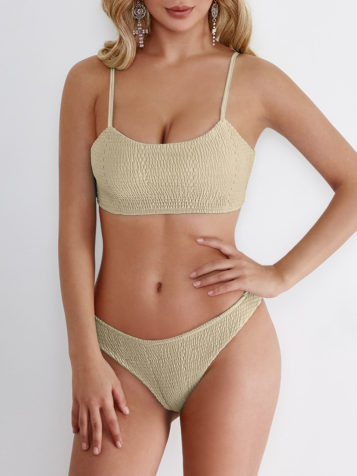 Material:PolyesterSleeves:SleevelessStyle:Vacation Style,Sexy StyleDetail:Pleated DesignType:BikiniFit:Bodycon Fit