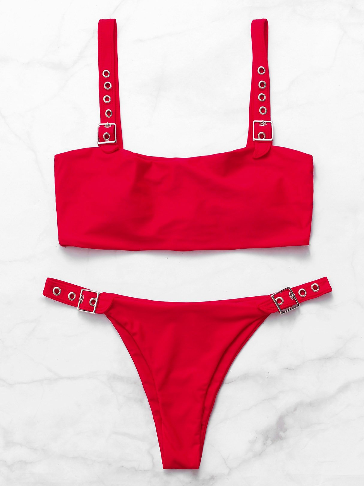 Material:PolyesterNeckline:Square NeckStyle:Sexy StyleDetail:Wireless,Adjustable,Padded Design,With LiningWaist Design:Middle-WaistedType:BikiniFit:Bodycon Fit