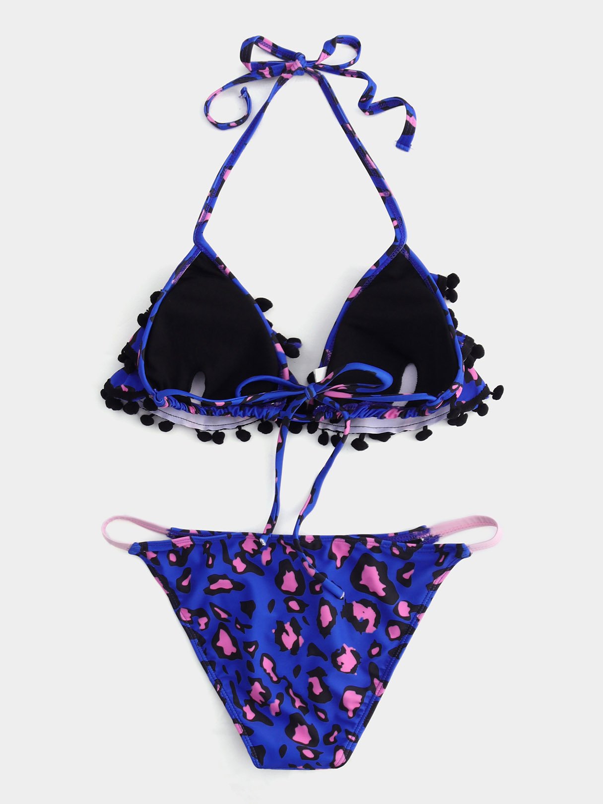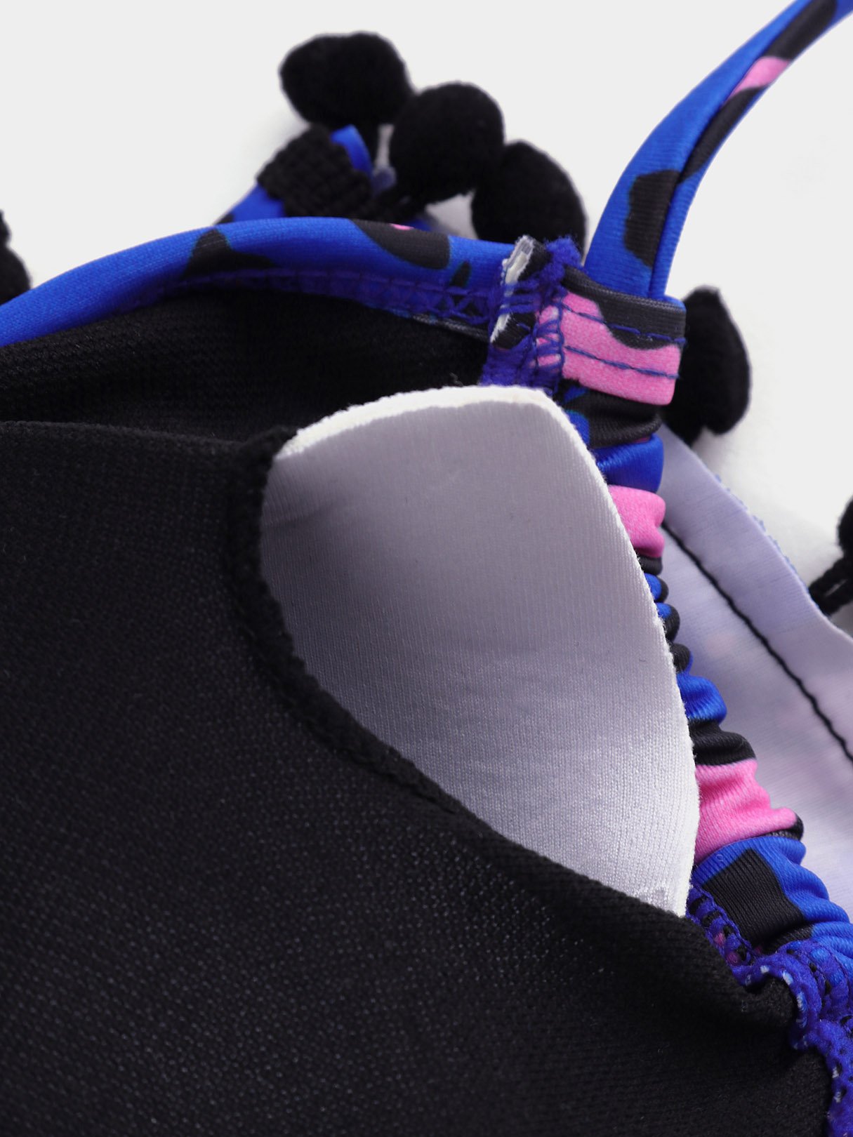 Strapless Deep V Neck Floral Print Wireless Sleeveless Ruffle Hem Bikinis