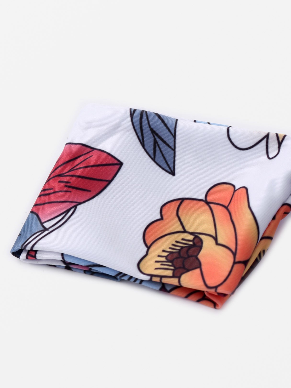 Strapless Short Sleeve Floral Print Bodycon Bikini Suits