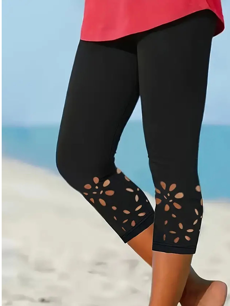 Tight Plain Hollow Out Fashion Capris Leggings - Black / S is backordered and will ship as soon as it is back in stock.
