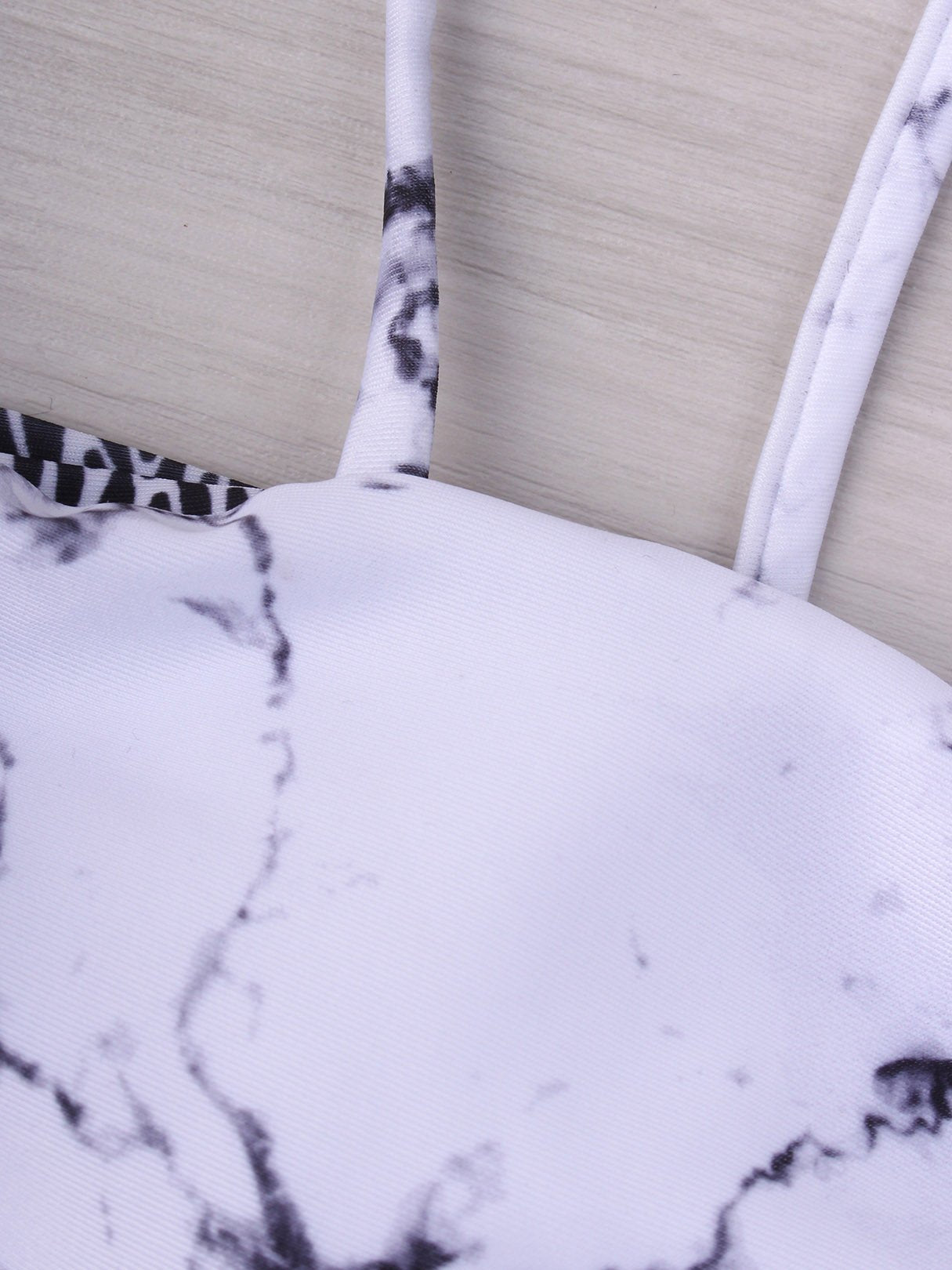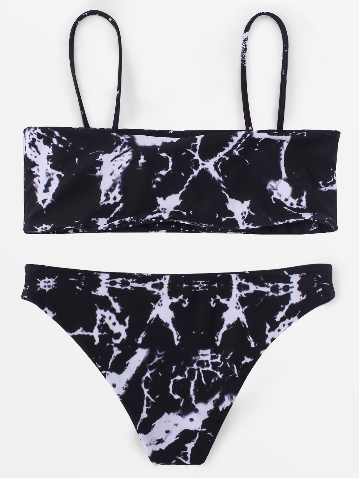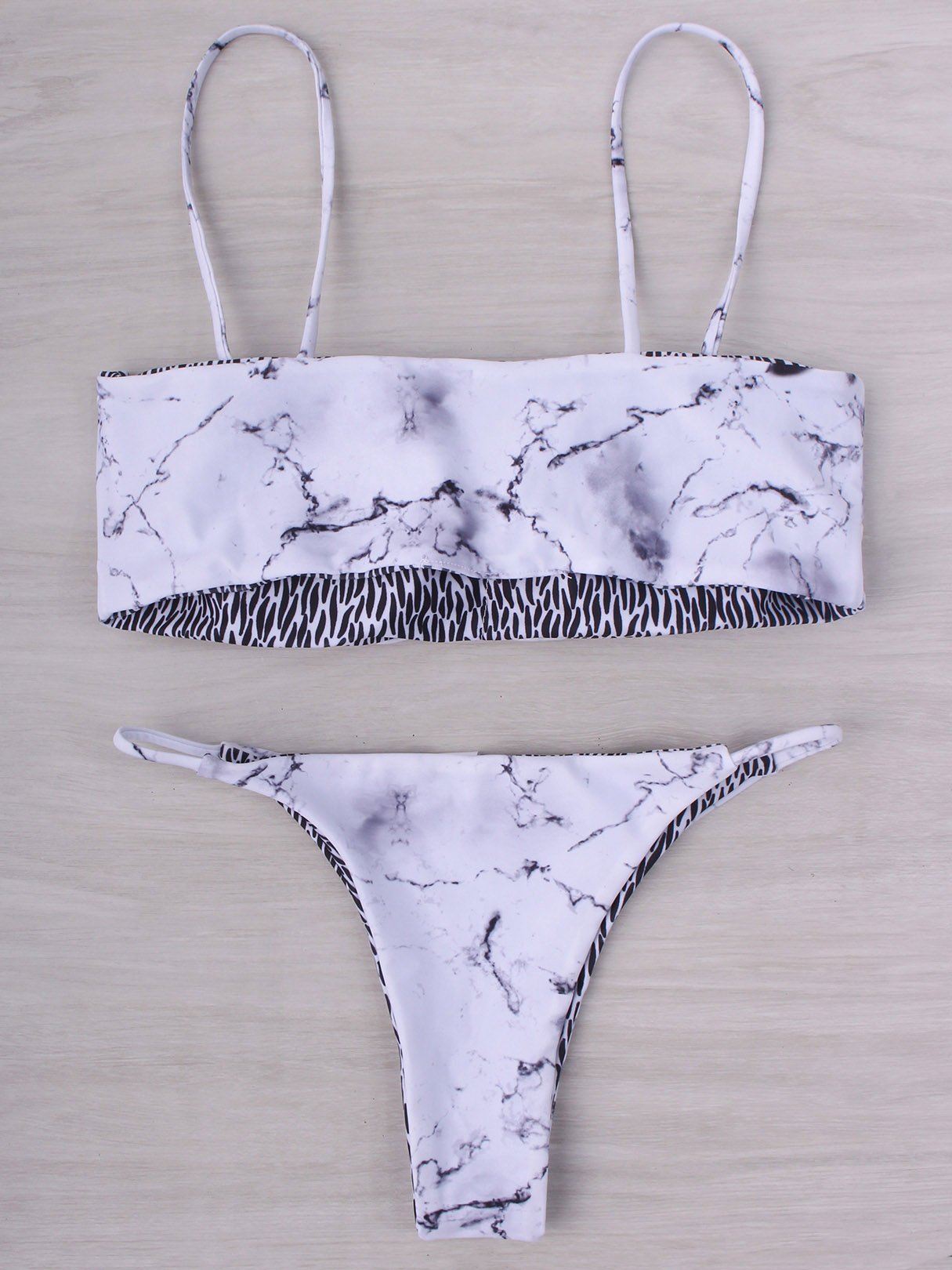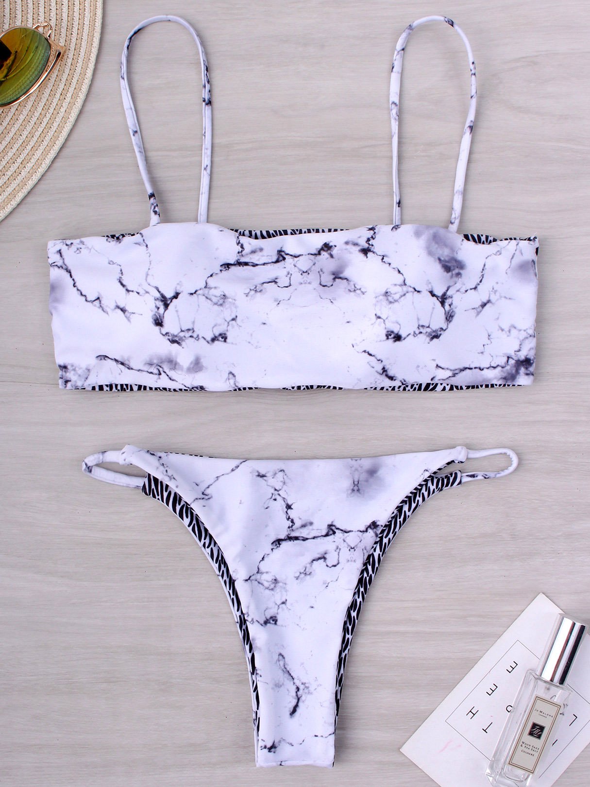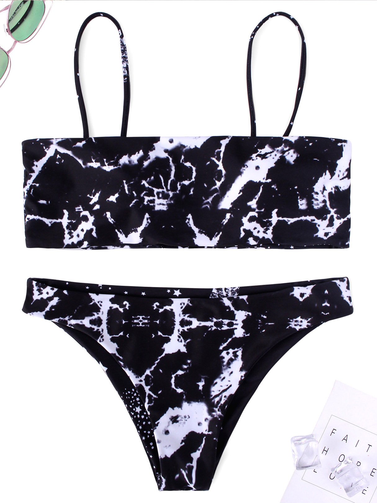 Tube Top Sleeveless Printed Spaghetti Strap Two Piece Bikinis
