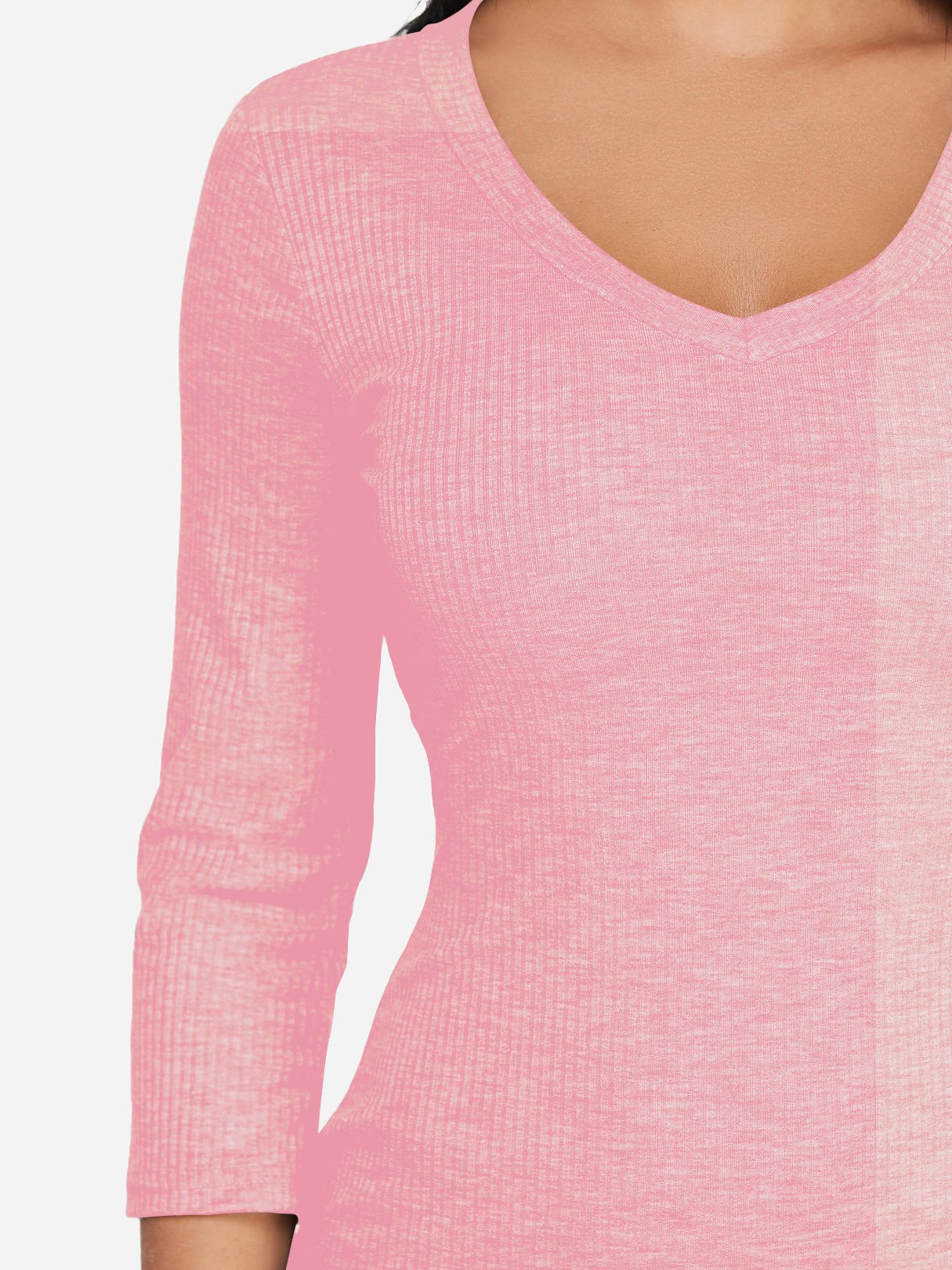 V-Neck 3/4 Sleeve Plain Bodycon Hem Pink Dresses - Pink / S is backordered and will ship as soon as it is back in stock.