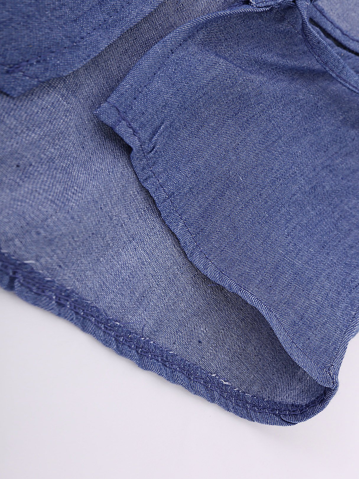 V-Neck Backless Lace-Up Sleeveless Blue Camis